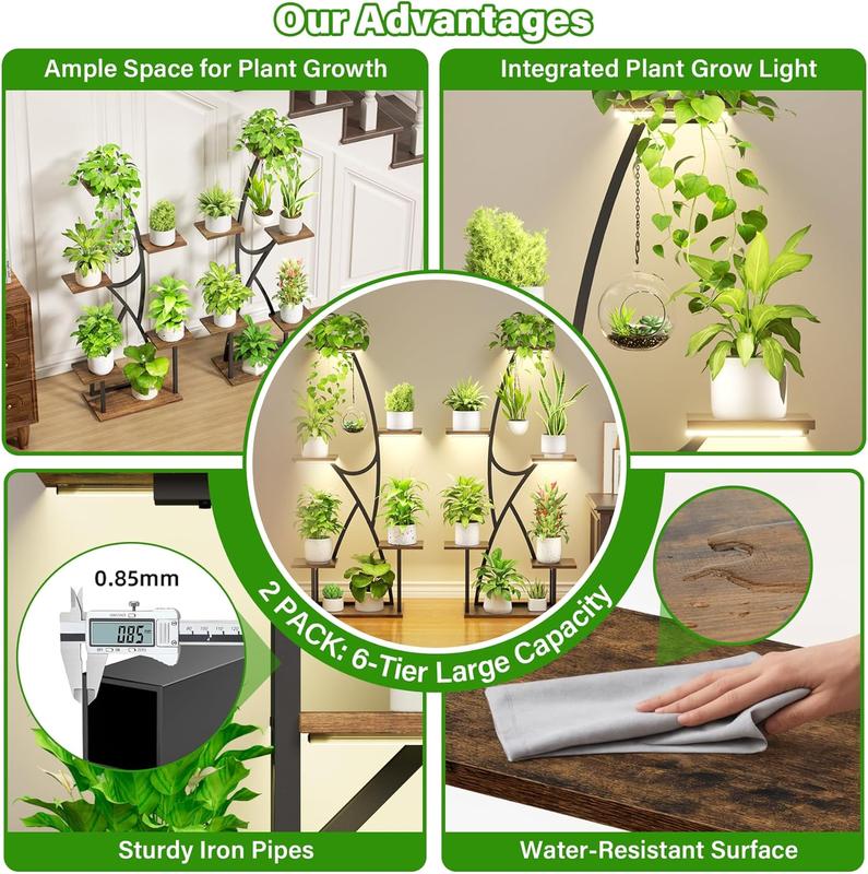·Plant Stand with Grow Light - Unlike conventional plant stands, ours includes a built-in timer, 9-level dimmable settings, and full-spectrum grow lights. These lights enhance indoor plant growth by accelerating photosynthesis. Perfect for every stage of plant growth and work well with a variety of plants including succulents, orchids and more. Brighten your space while enhancing plant health in areas with little light