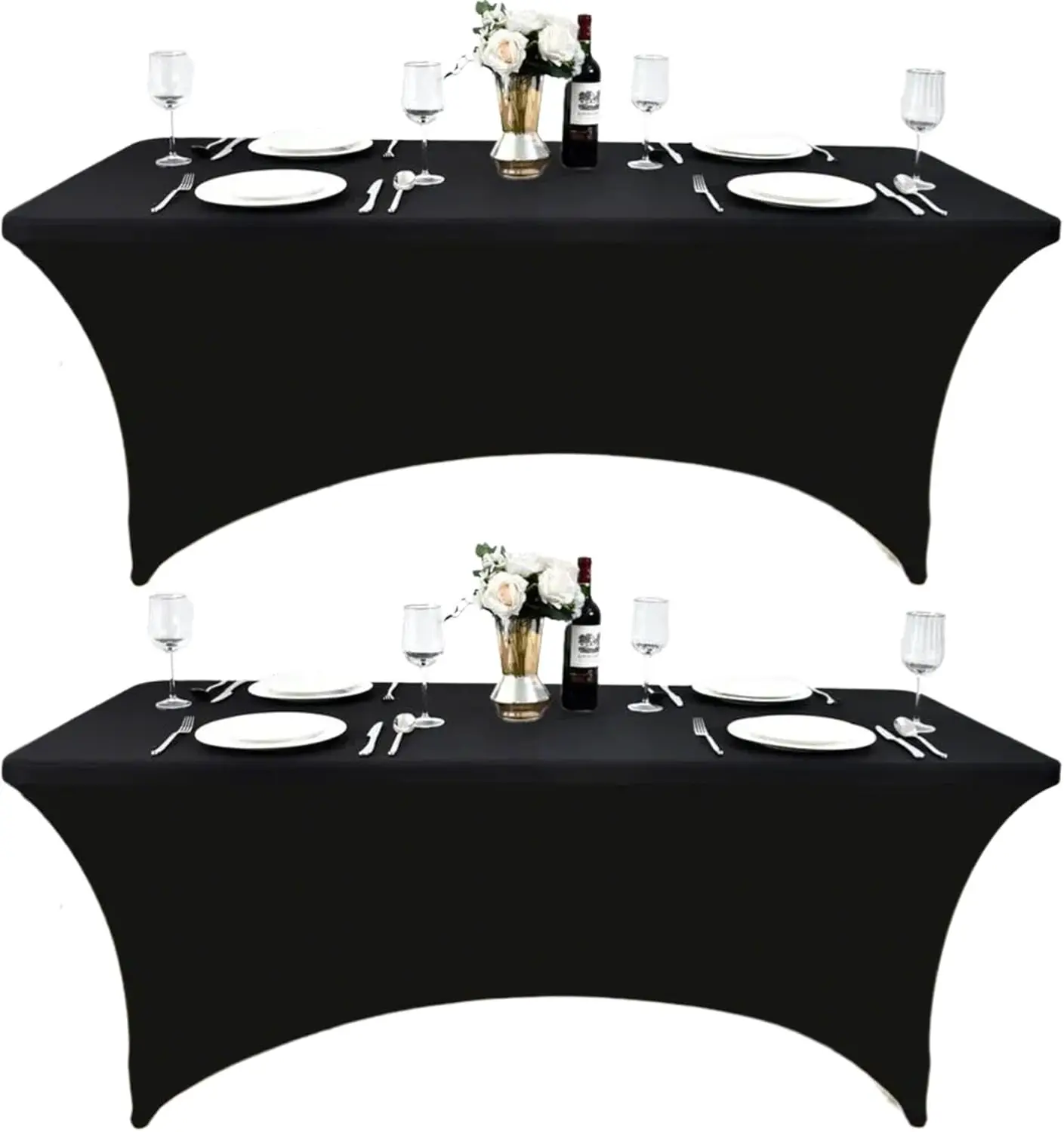 The stretchable table cover is made of 90% polyester and 10% spandex fabric, ensuring a soft touch and high elasticity. No need to iron and can be laundered countless times. This premium quality material guarantees durability and ease of care, making it a reliable choice for any event.