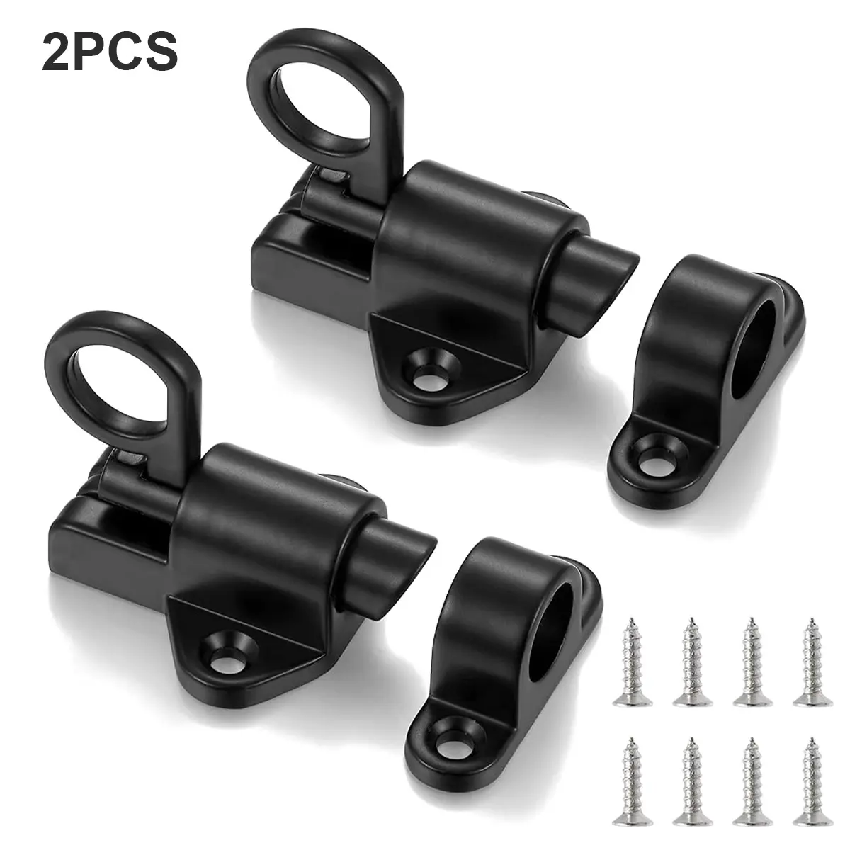 2 Packs Self-Closing Latches,Black Spring Door Lock,Resilient Bolt Latch Aluminum Alloy Safety Automatic Spring Barrel Slide Door Lock with Screws,Used for Gate,Window and Cabinet etc