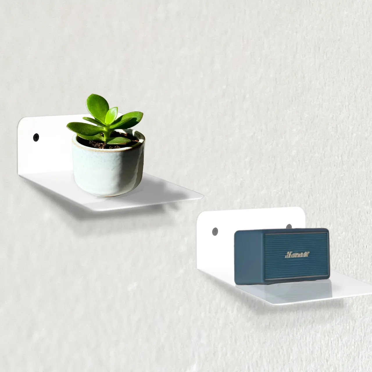 2-Pack Small Acrylic Wall Shelves, 4.92 Inch Floating Shelves for Echo Camera, Speaker Display Stand, Bathroom Living Room Bedroom