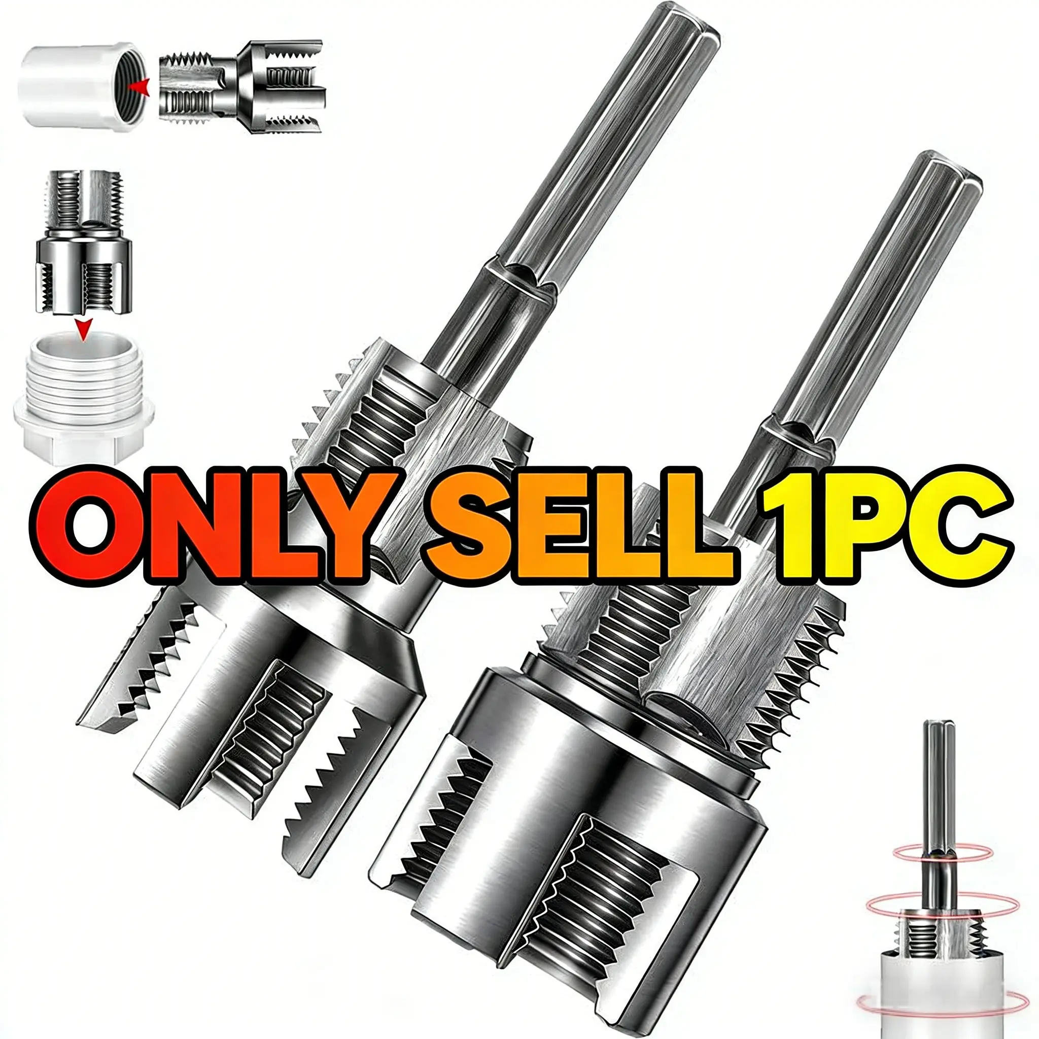 Professional Integrated Pipe Threading Tool Set, Internal & External Thread Maker for Ppr/PVC Pipes, Fits Multiple 1/2", 3/4", 1" Pipes, Works with Electric Drills