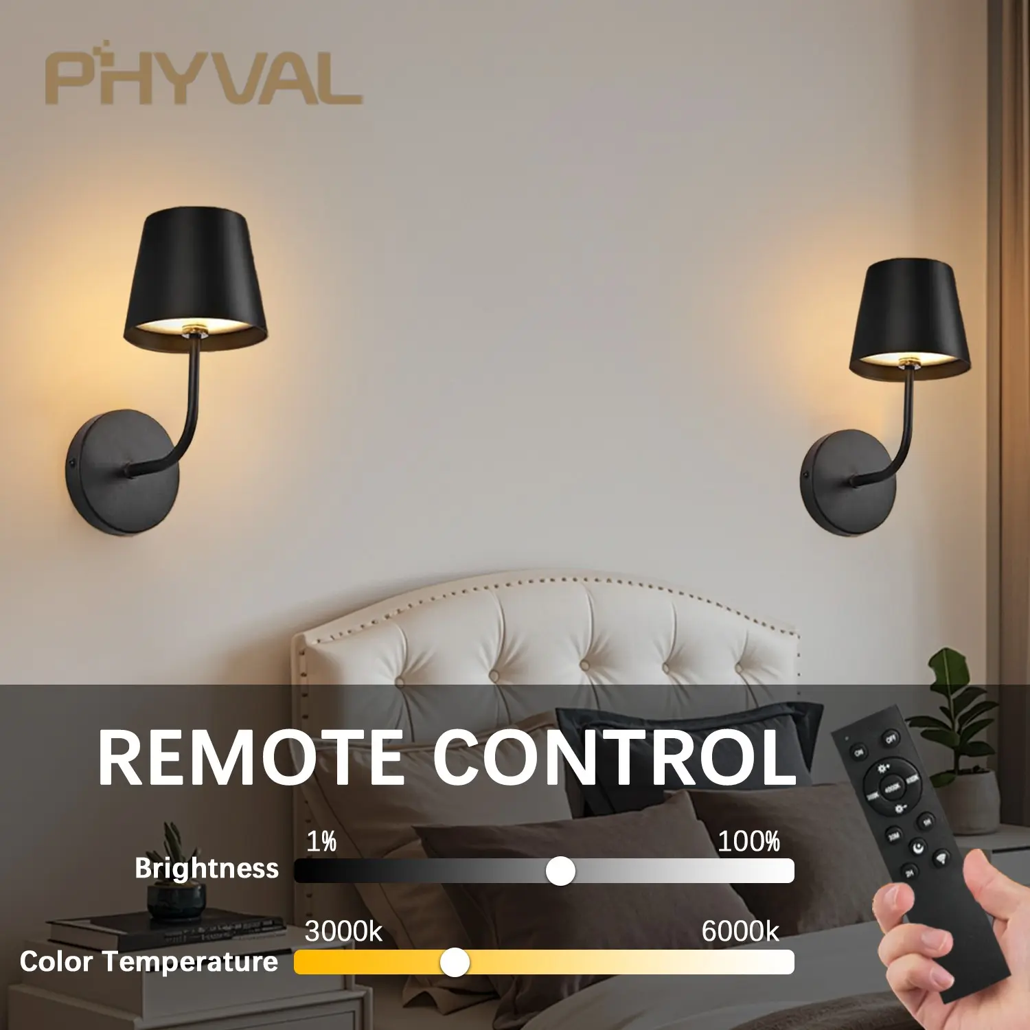2-Pack LED Wall Lights, Adjustable Dimmable Touch Remote Control, Wire-Free Lamp for Bedroom Bedside Study Hallway Entryway