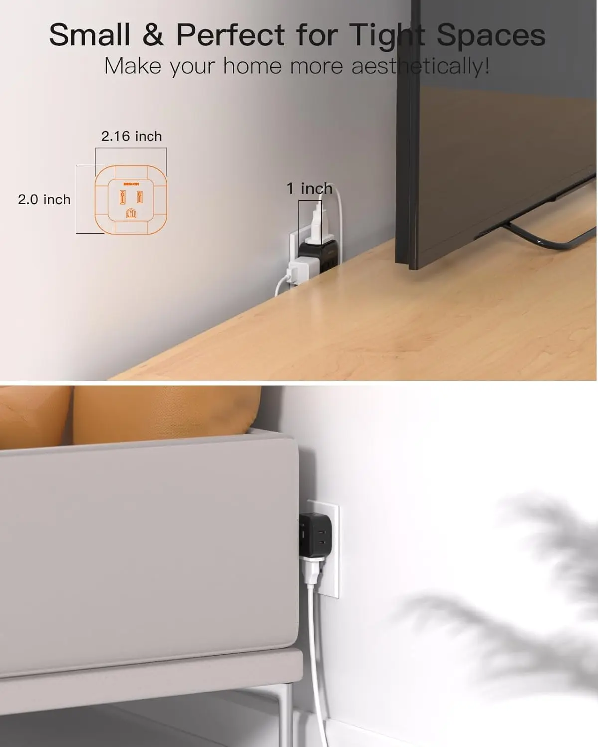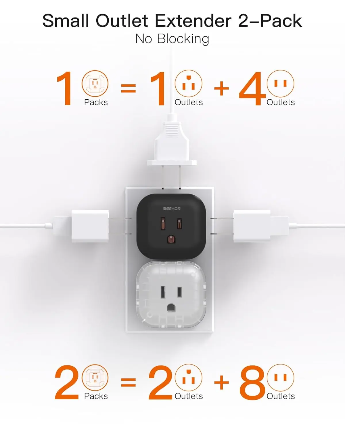 【Small Outlet Extender 2-Pack】The wall outlet extender can turn one wall outlet into 5 AC sockets, which creates a portable charging station for your various electronic devices. 2-pack is more practical, and you can plug in both plug extenders at the same time to charge up to 10 devices. 【Space Saving】This multi plug outlet is thinner than ordinary plug adapters, perfect for narrow spaces like behind the sofa or TV cabinet. Fit for both GFCI and standard receptacles. Plug this outlet adapter on the top of the outlet without blocking the other below, and create a multiple-port charging station in your bedroom, bathroom, living room, or any area with limited outlets. 【Compact and Portable】The small size of 2.16*2*1 inches is perfect for your business trip or travel. This mini wall plug adapter fits easily into your suitcases, backpacks, and handbags. You can take this plug splitter anywhere such as home, hotel, office, and college dorm room. 【Super Safety with All-round Protection】Certified by ETL and FCC. This Plug Splitter prevents your electric devices from over-current/over-charge/ short circuit/overheating. Fire-resistant ABS shell (1382℉), and high-quality components can improve durability and safety. 【Cruise Ship Essentials】This multi plug outlet extender has no surge protection and no cords, making it fully cruise ship approved. This outlet splitter solves your problem of using appliances on a cruise. This outlet splitter is more practical, and you can plug in both plug extenders at the same time to charge up to Small & Perfect for Tight Spaces This wall outlet adapter is thinner than ordinary plug adapters, perfect for narrow spaces like behind the sofa or TV cabinet. Space Saving The plug adapter with 5 side AC outlets is located on separate sides, so you don't worry about larger plugs blocking each other. Compact design with small size takes up less space on your desk or luggage. Fit for both GFCI and standard receptacles. The wall outlet extender can turn one wall outlet into 5 AC sockets, which creates a portable charging station for your various electronic devices. 2-pack is more practical, and you can plug in both plug extenders at the same time to charge up to 10 devices. The small size of 2.16*2*1 inches is perfect for your business trip or travel. This mini wall plug adapter fits easily into your suitcases, backpacks, and handbags. You can take this plug splitter anywhere such as home, hotel, office, and college dorm room. Certified by ETL and FCC. Electrical outlet extender prevent your electric devices from over-current/over-charge/ short circuit/overheating. Fire-resistant ABS shell (1382℉), and high-quality components can improve durability and safety. This outlet extender has no surge protection and no cords, making it fully cruise ship approved. This outlet splitter solves your problem of using appliances on a cruise.