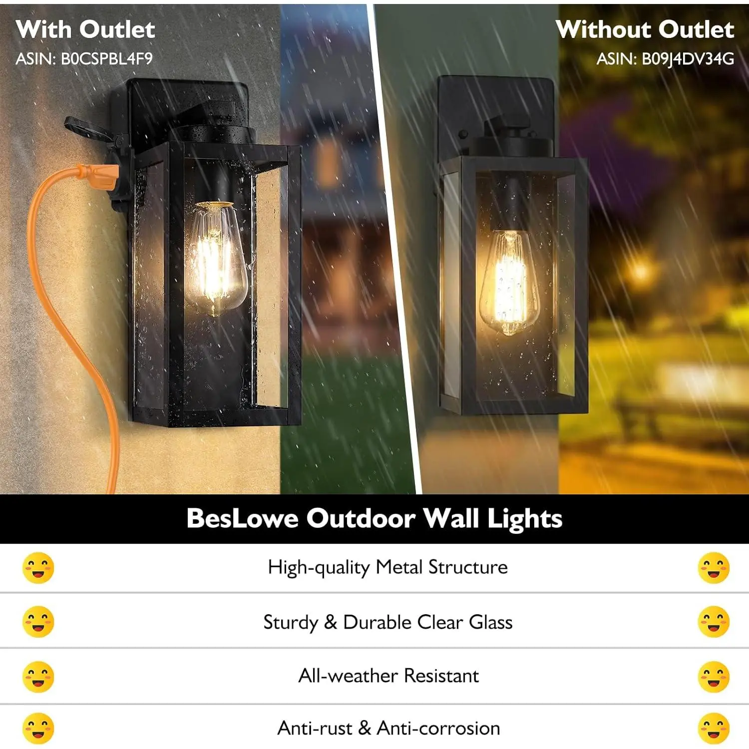Elevate your outdoor experience with BesLowe wall lanterns that blend lighting and functionality. Effortlessly illuminate your house while offering the convenience of a built-in outlet. Say goodbye to tangled cords as you can easily power up devices or connect outdoor decorations with these lanterns.