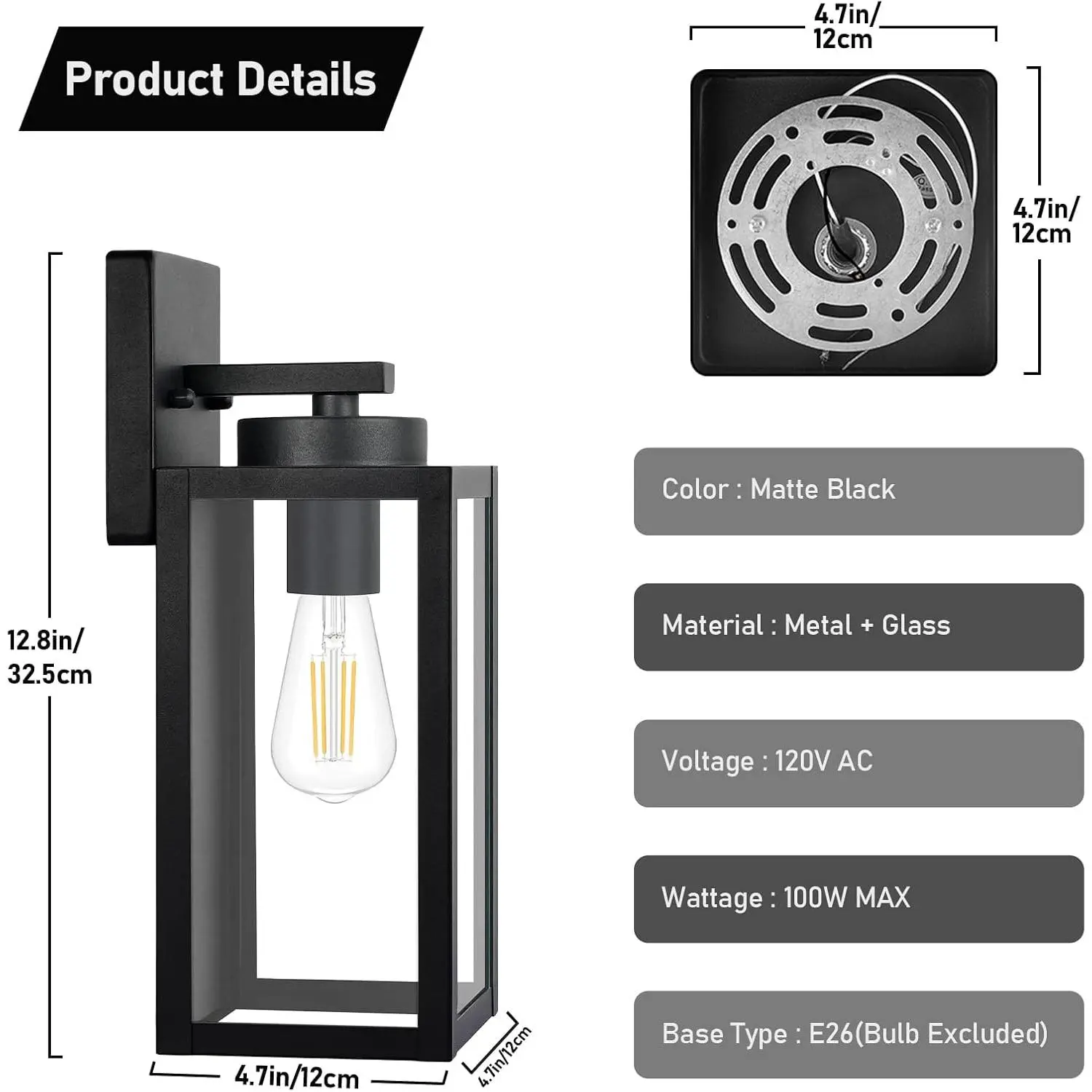With the heavy-duty metal frame and high-strength glass panels, these exterior wall lamps work well even on extreme weather such as rainstorm, snowstorm, hurricane etc.