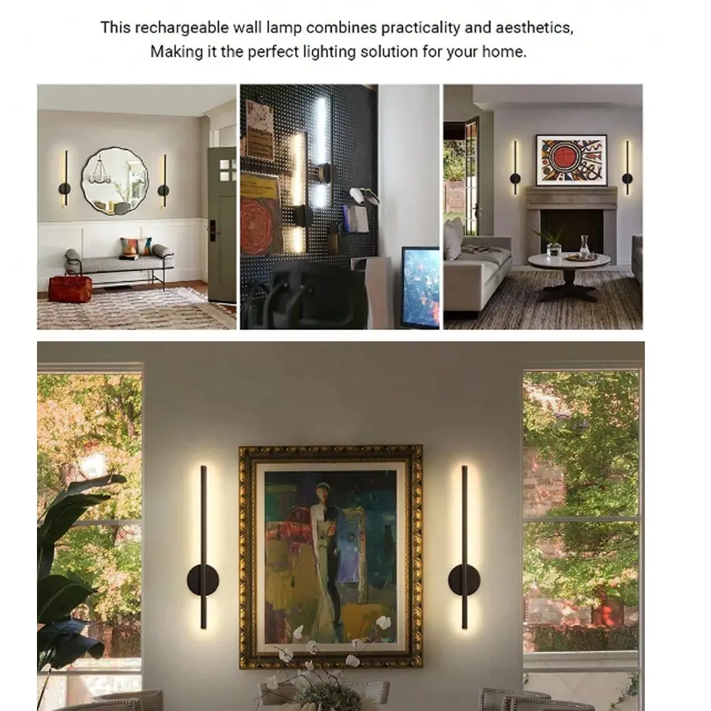 2-Pack Rechargeable Modern LED Wall Lights | Wireless | Black/Gold | 50CM | 4400mAh Battery | Touch + Remote Control | 3 Color Temperatures | Ideal For Living Room/Bedroom/Study | Interior LED Lights