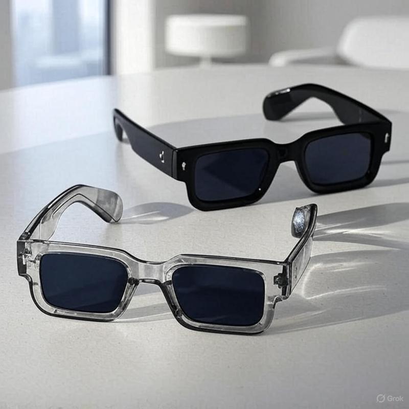 Two Frames, Infinite Styles – Your Pass to Effortless Cool   Tired of being boxed into one sunglass look?Our 2-pack retro square sunglasses shatter limits: a bold black frame for statement moments, and a chic transparent pair for laid-back swagger.Perfect for switching up your vibe from sunrise beach trips to sunset rooftop parties! Why This Set Rules   Y2K-Ready Design :Classic square frames (2025’s biggest trend!)in black and transparent – nail the retro-futuristic look or keep it minimalist.       UV400 Armor :Blocks 100% UVA/UVB rays – protect your eyes during hikes, drives, or long days under the sun.       Lightweight Luxury :Crafted from premium acetate for a snug, no-pinch fit – wear all day without discomfort (even during summer heat!).       2-Pack Value :Share with your partner, gift a friend, or stash a pair in your car/backpack – never get caught in a "sunglass rut" again. How to Slay Every Look Black Frame:Pair with leather jackets, denim, or bold prints for concerts, date nights, or edgy street style. Transparent Frame:Match with pastels, whites, or neutrals for brunch, yoga, or a "cool minimalist" vibe. Both:Rotate daily to keep your feed fresh – Instagram-ready style, sorted. Ditch the compromise – this 2-pack gives you versatility, protection, and trend-setting power.   Add to Cart Now – Elevate Your Shade Game!