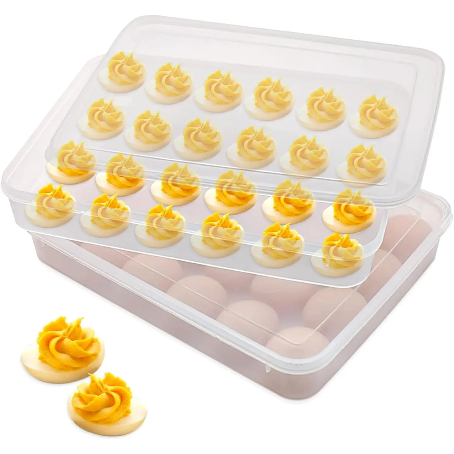 & Durable Material: Crafted from high-quality plastic, these deviled egg containers are durable and resistant to breakage. The transparent design allows you to easily check contents, making it for deviled egg parties or everyday use.