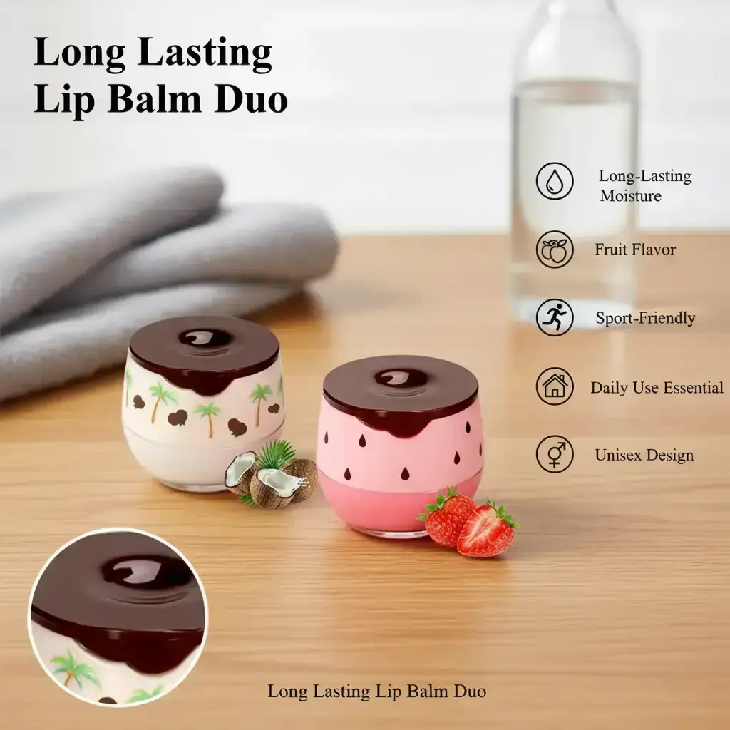 2-Pack Lip Balm Set for Men & Women, Long-Lasting Moisturizing Hydrating Lip Care Base with Fruit Flavor, Ideal for Sports & Daily Use