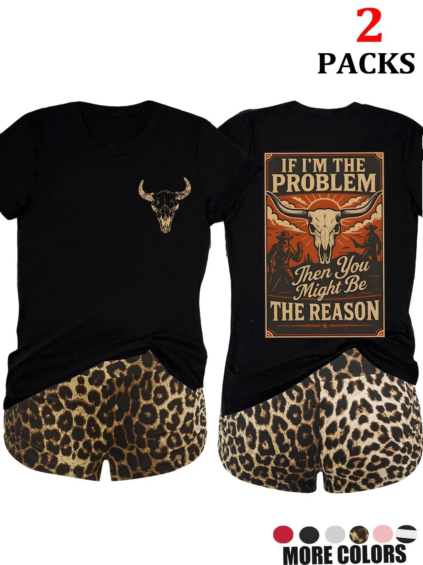 【Value Pack】: Includes two matching short-sleeve tees and high-waisted leopard print shorts for maximum value.