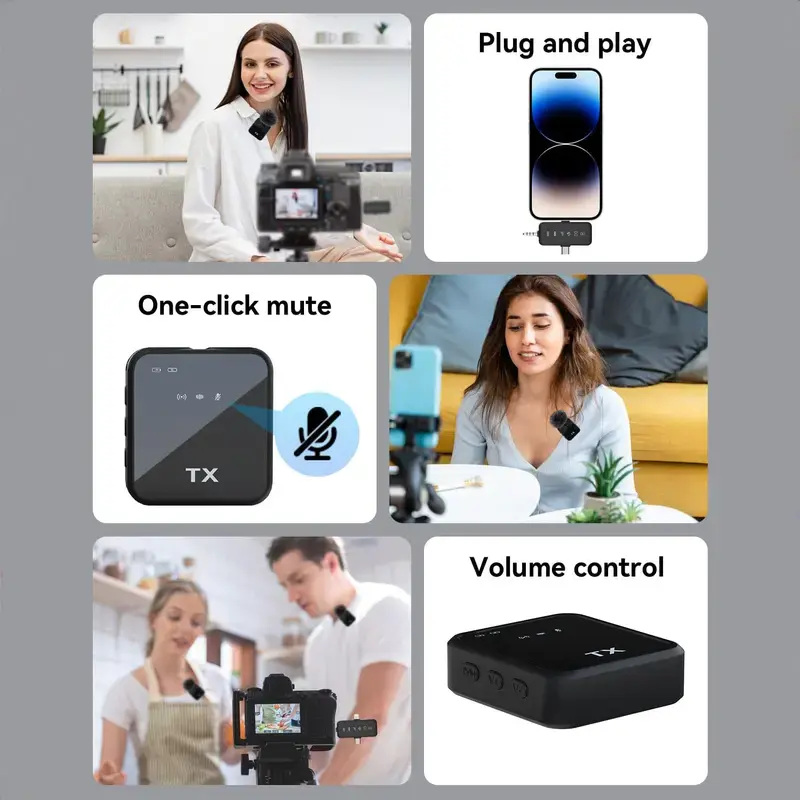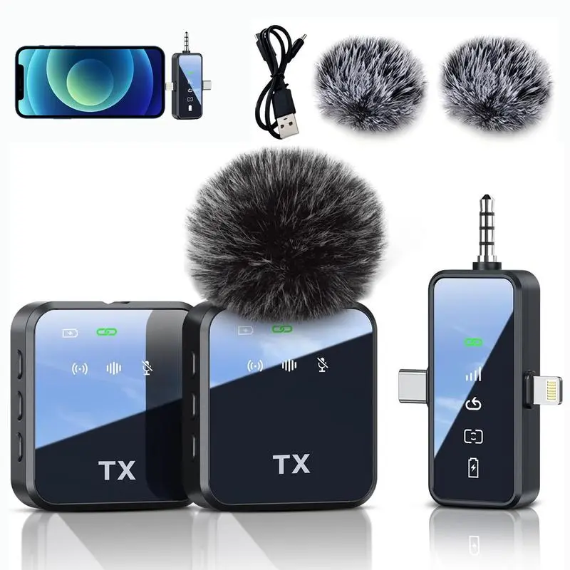 This 2-Pack Wireless Lavalier Microphone is ideal for iPhone, Android, and camera users. It offers a 328ft transmission range, ensuring clear audio. With 18H battery life, it's perfect for long recording sessions. Ideal for interviews, vlogs, and YouTube content.