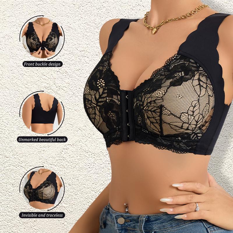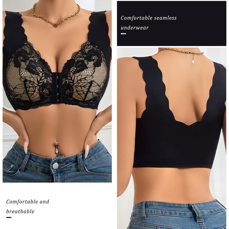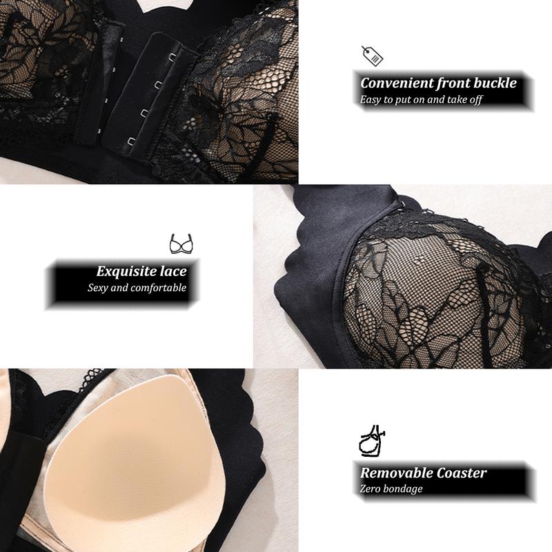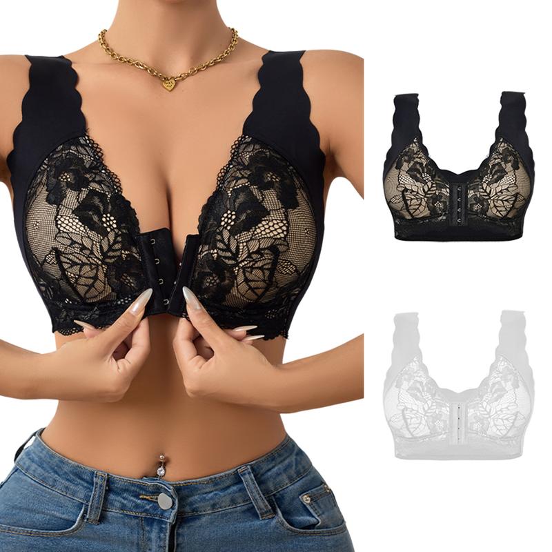 Upgrade your daily lingerie with this 2-pack of lace front-closure bras. These bras offer comfort and elegance. Fixed padding ensures natural shaping, while a front clasp makes them easy to wear. The wide straps relieve shoulder pressure, and the lace detailing adds a feminine touch. Perfect for everyday wear, these bras keep you cool and comfortable all day.