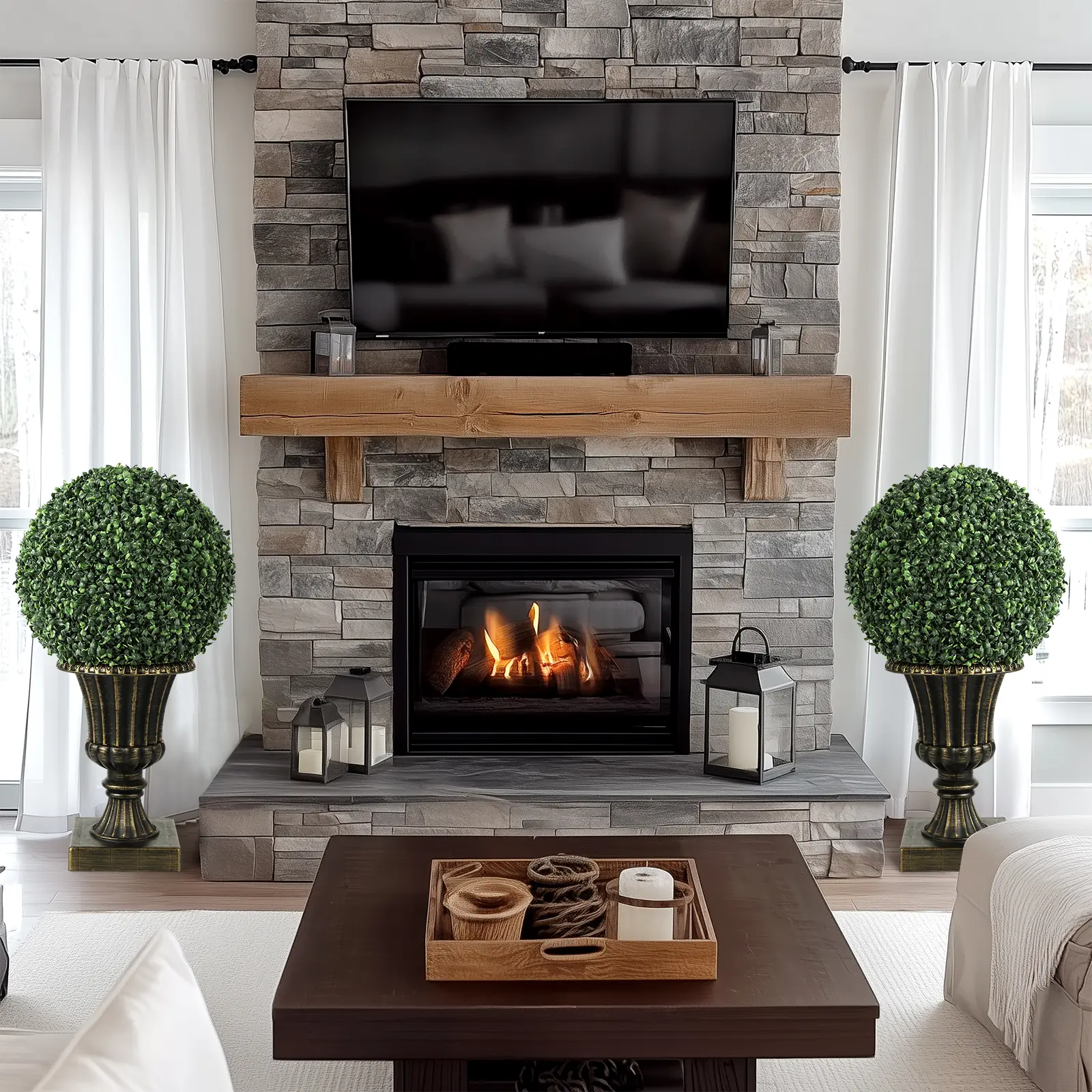 The gold urn base adds an all-year green faux decor touch. Perfect for DIY faux plants decorative balls. These versatile balls are a great addition to any home or outdoor setting.