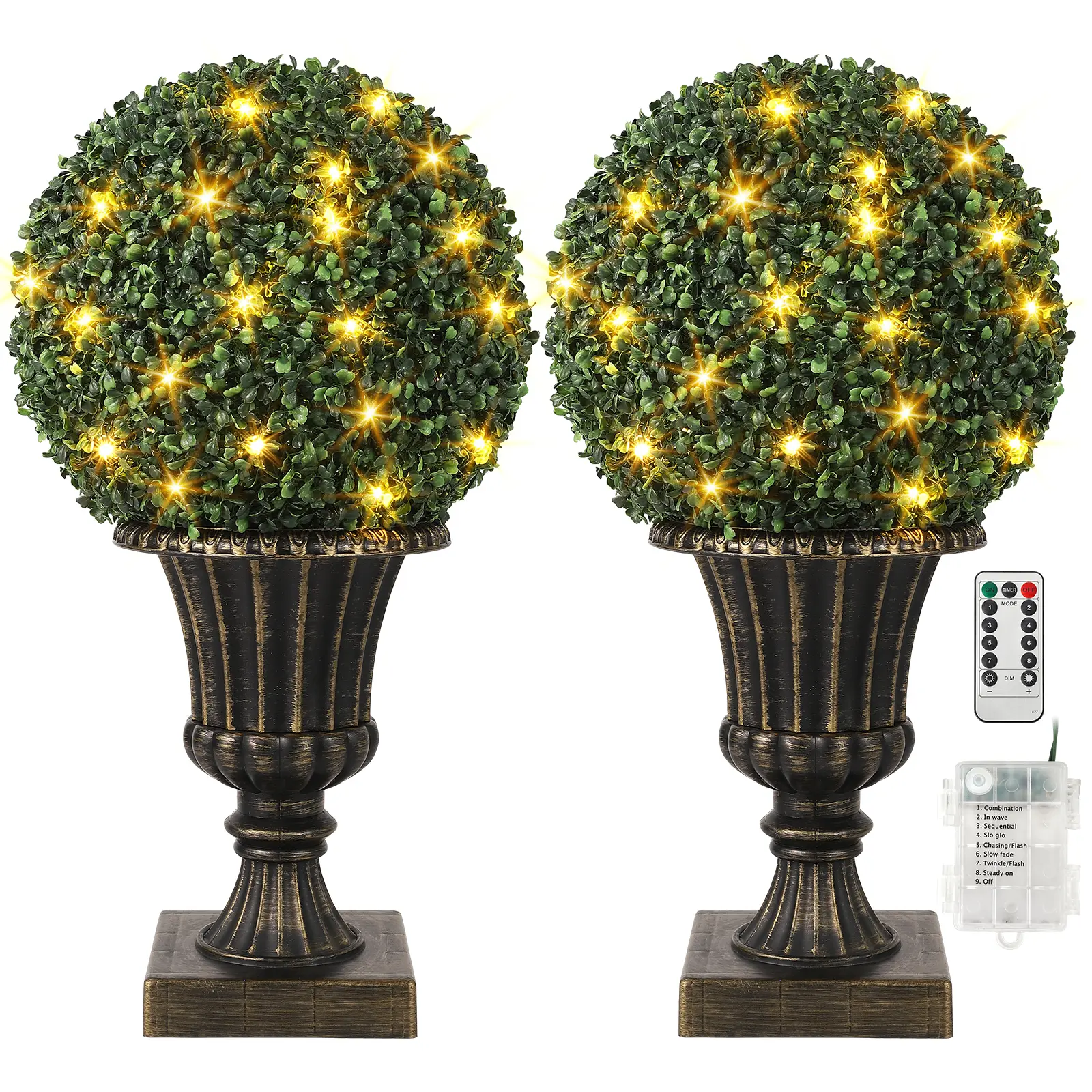 🌿 Elegant 16" Boxwood Topiary Balls with 40 LED Lights