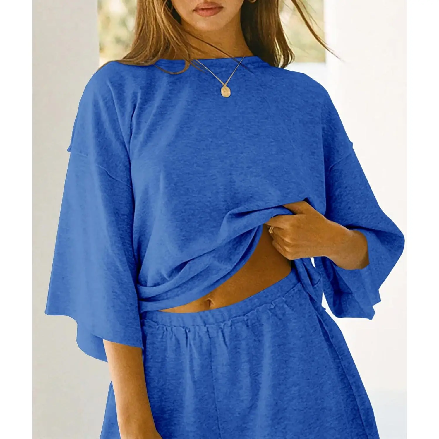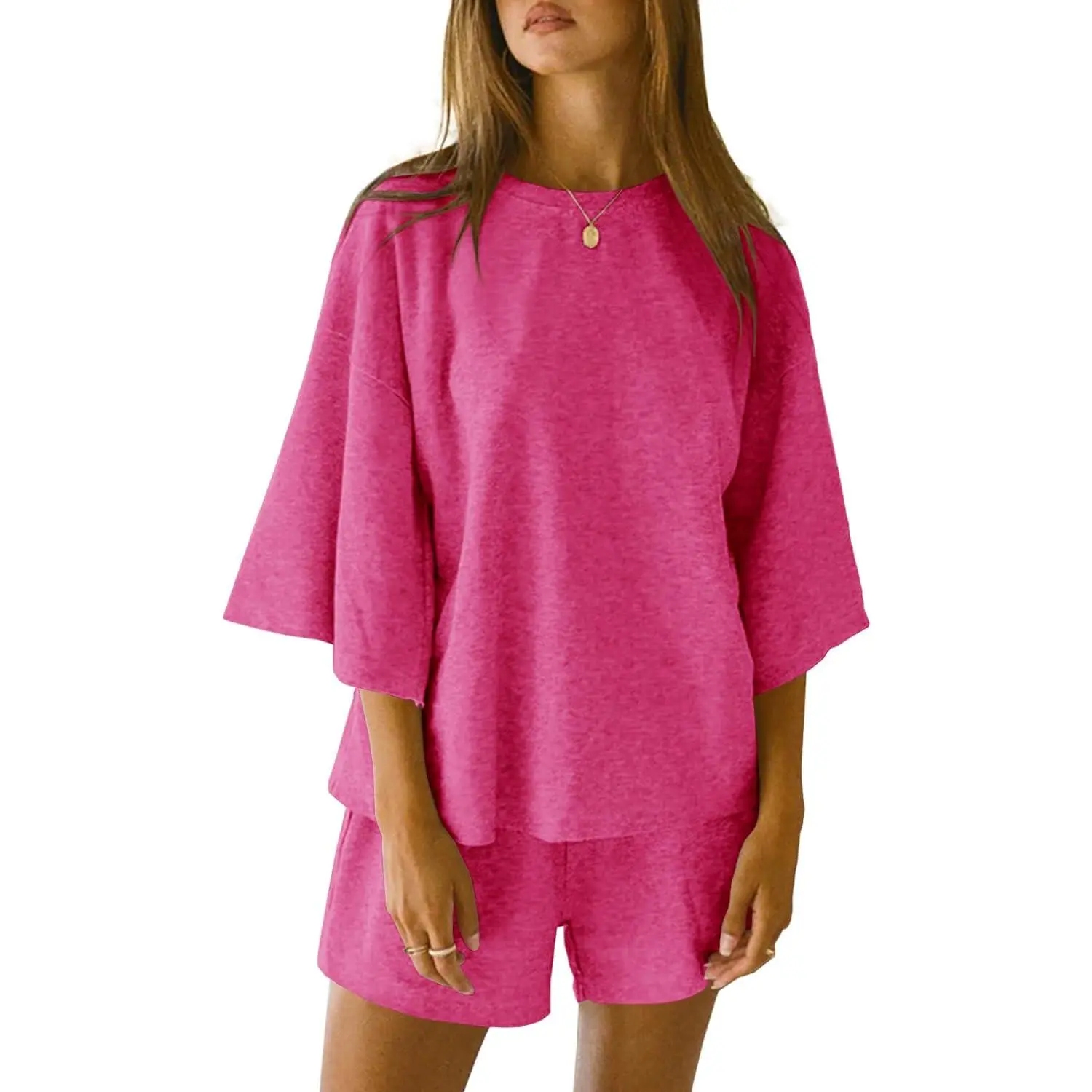 ·Visual: The image showcases the set in various colors, highlighting the loose fit and 3/4 sleeve design.