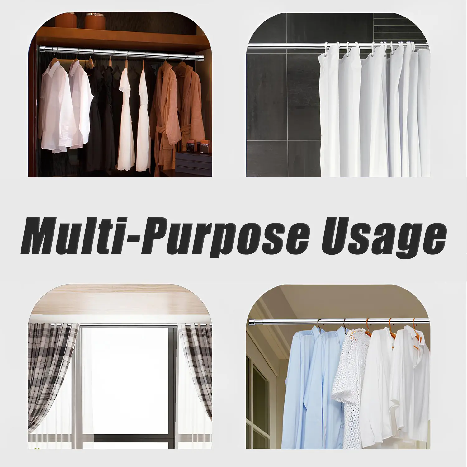 2-Piece Multifunctional Extendable Rods, Adjustable Metal Bars for Closet Storage, Durable Expandable Hanger & Clothesline, Space Saving