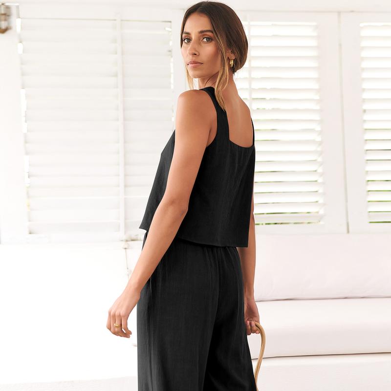 Machine washable but hang it dry! Needs a good steaming after. This set is light and airy. The tank straps are a little loose and can slip but double sided tape will fix that. Top isn’t overly cropped. Love the deep pockets on the pants. I feel like I’m wearing pajamas they’re so comfortable .