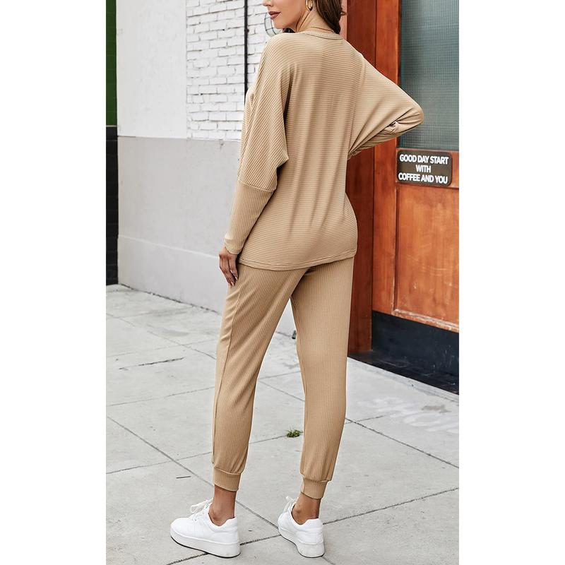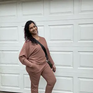 Such a cute loungewear set! Lightweight so perfect for fall and love the pockets!! Shipping was super fast. Fits true to size I’m 5’9” 150 lbs and the medium fits perfectly 🥰
