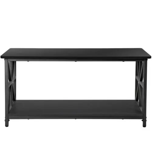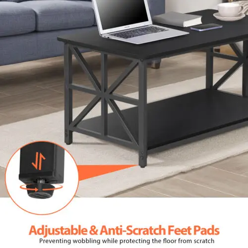 Zenstyle 2 tier coffee table with X-shaped legs brings a farmhouse touch to your living room with its clean-lined design and practical features. Crafted from MDF board, it showcases a rectangular tabletop in a warm hue, perfect for displaying your daily necessities. The lower open shelf offers extra storage space for baskets, tech accessories, etc. With its straight legs and balanced design, this table fits seamlessly into both modern and traditional decor styles. Overall Dimensions: 39.4" L x 21.7" W x 18.8" H, whether in the living room, office, den, or cafe, the coffee table will work efficiently to keep your space clean and tidy.