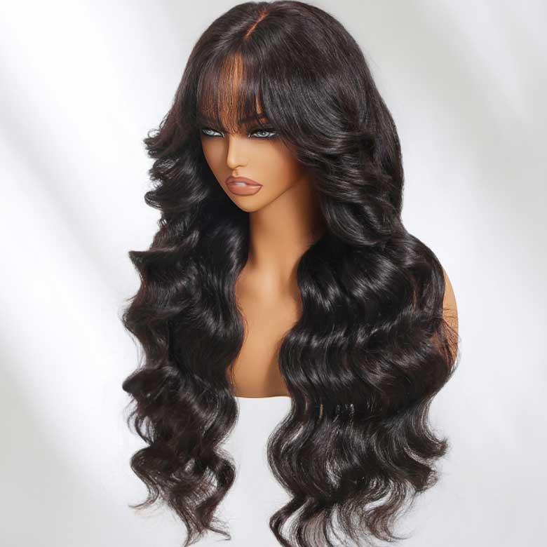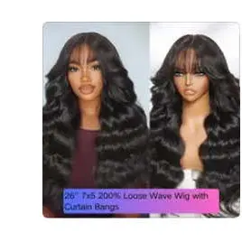 26'' 7x5 200% Loose Wave Wig with Curtain Bangs