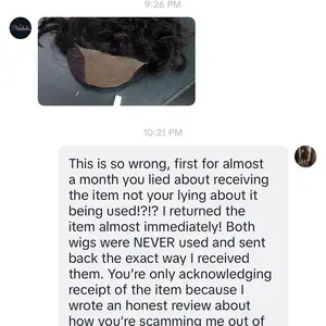 Since my first review Nadula reached out acknowledging they actually did receive the entire time and LYING to me about the unit being used. I NEVER WORE EITHER WIG they were both RETURNED THE SAME WAY I RECEIVED them just to get me to CHANGE MY REVIEW to 5 stars then they will refund my $ SCAMMER’S!