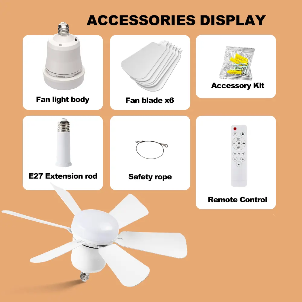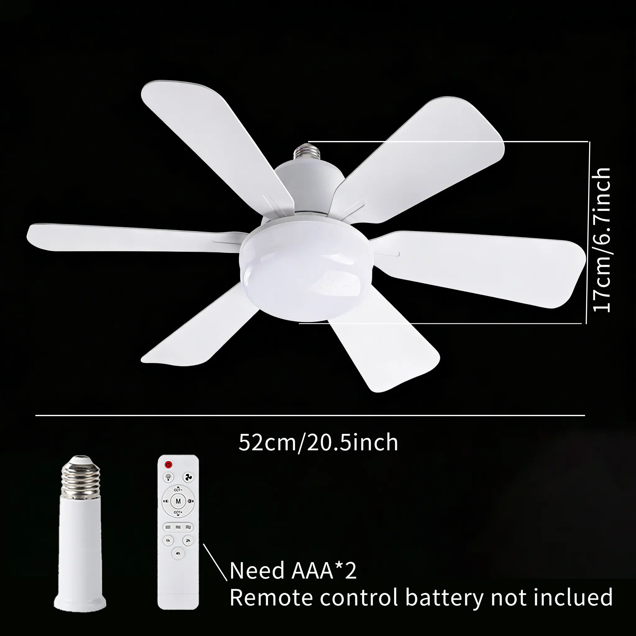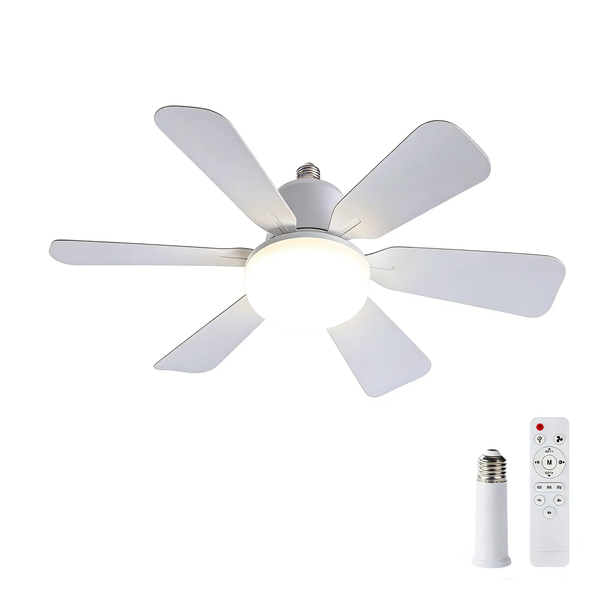 20.5" E27 Socket Ceiling Fan Light 30W-3-Speed Dimmable LED Fan Light,Remote Control for Kitchen Garage Workshop