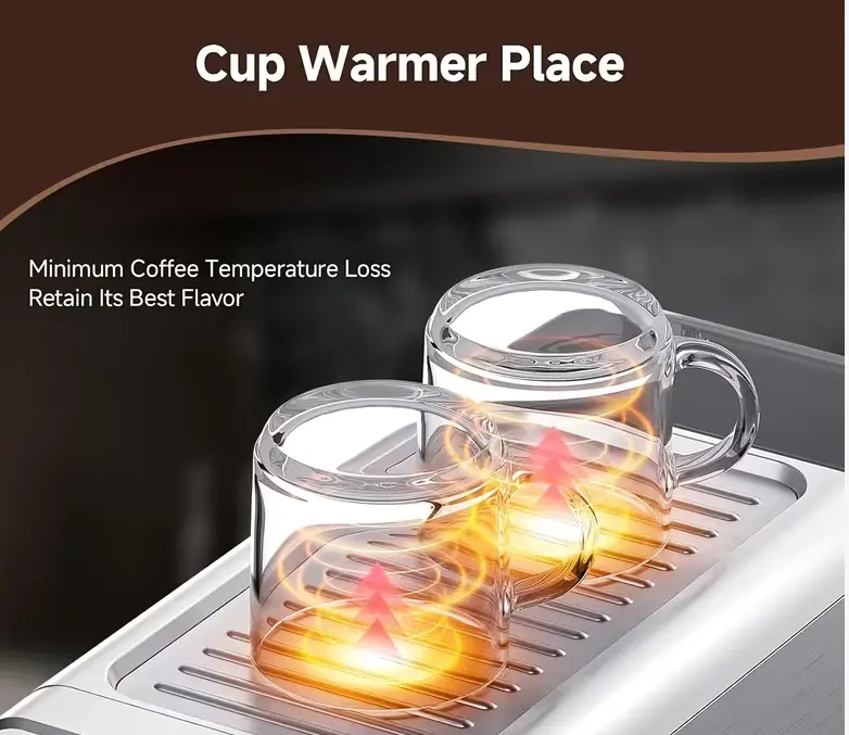 ·This semi-automatic 2-in-1 espresso maker features a 20-bar high-pressure pump and 1450W powerful motor. The 20-bar pressure extracts rich, aromatic flavors and golden crema from coffee grounds, delivering authentic, smooth espresso every time—ideal for busy coffee lovers who want lattes, cappuccinos, and more in minutes.