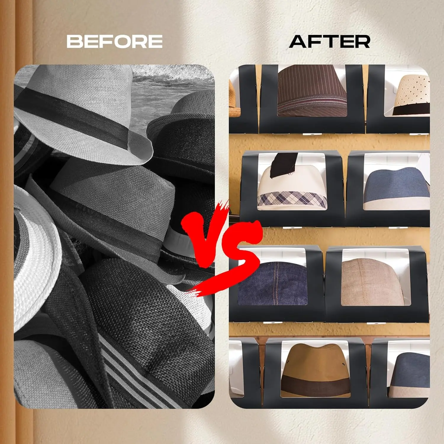 Easy to Assemble: the hat box for baseball caps is foldable, which is convenient for you to use when you need to place the hats; It only takes 4 steps to make a box from the flat pack, and the combined size is 8.7 x 7.7 x 4.8 inches/ 220 x 195 x 120 mm