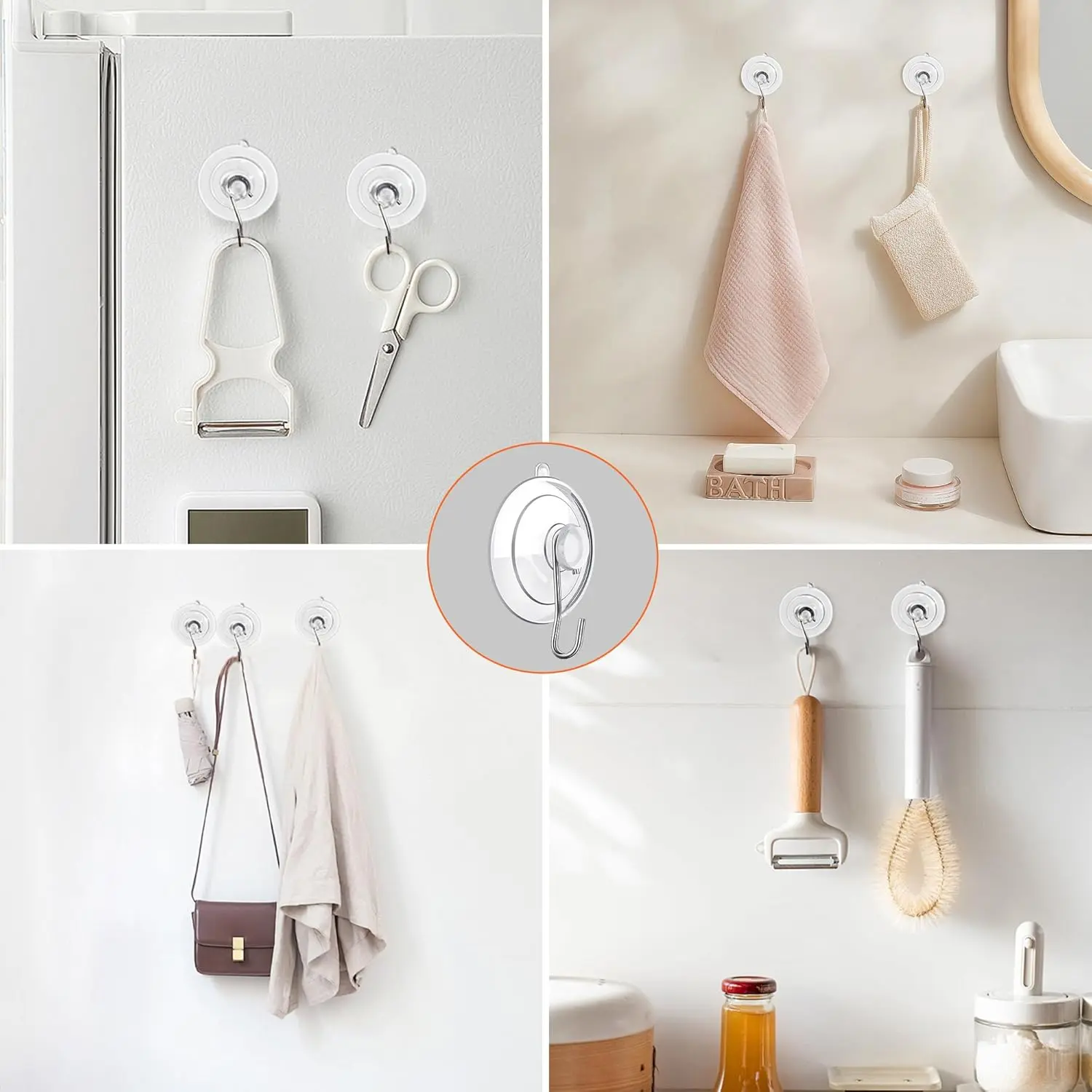Product quality: Our suction cups and hooks are made of PVC and stainless steel respectively, which are soft and durable and will not yellow, and the thread design can make them stay sticky the time!