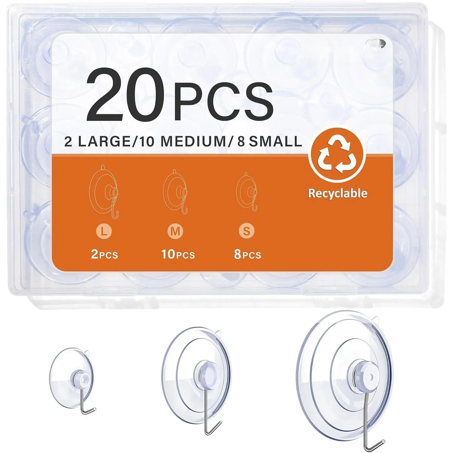 Product Content: We designed this suction cup kit with 20 count, including 2 count of 2.5inch suction cups, 10 count of 1.77inch suction cups, and 8 count of 1inch suction cups, the abundant quantity and diversified sizes can easily meet your daily needs!