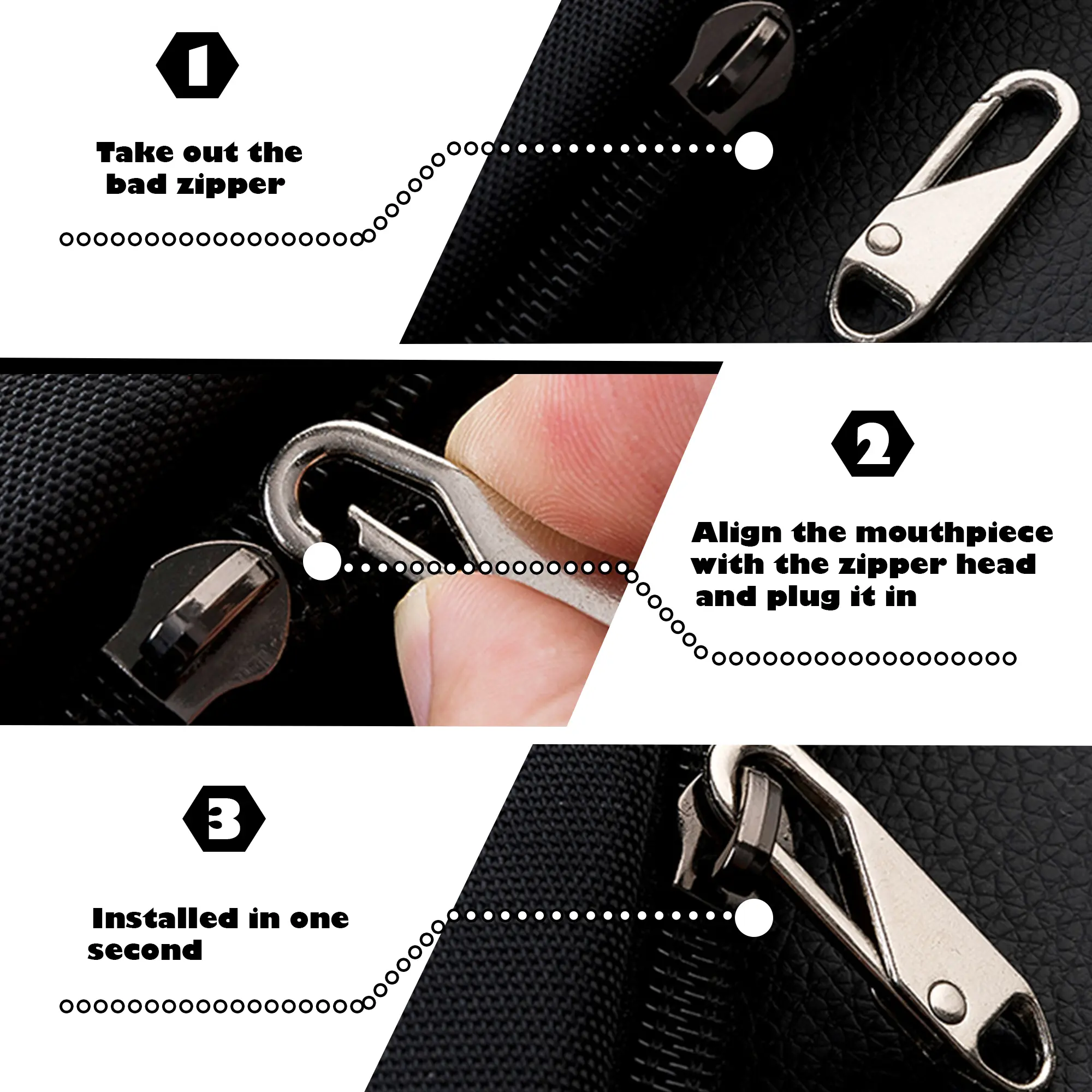 Easy to use: No tools or sewing required, just push one side in, pass through the opening, and then snap back. It's easy to repair your clothes or bag.