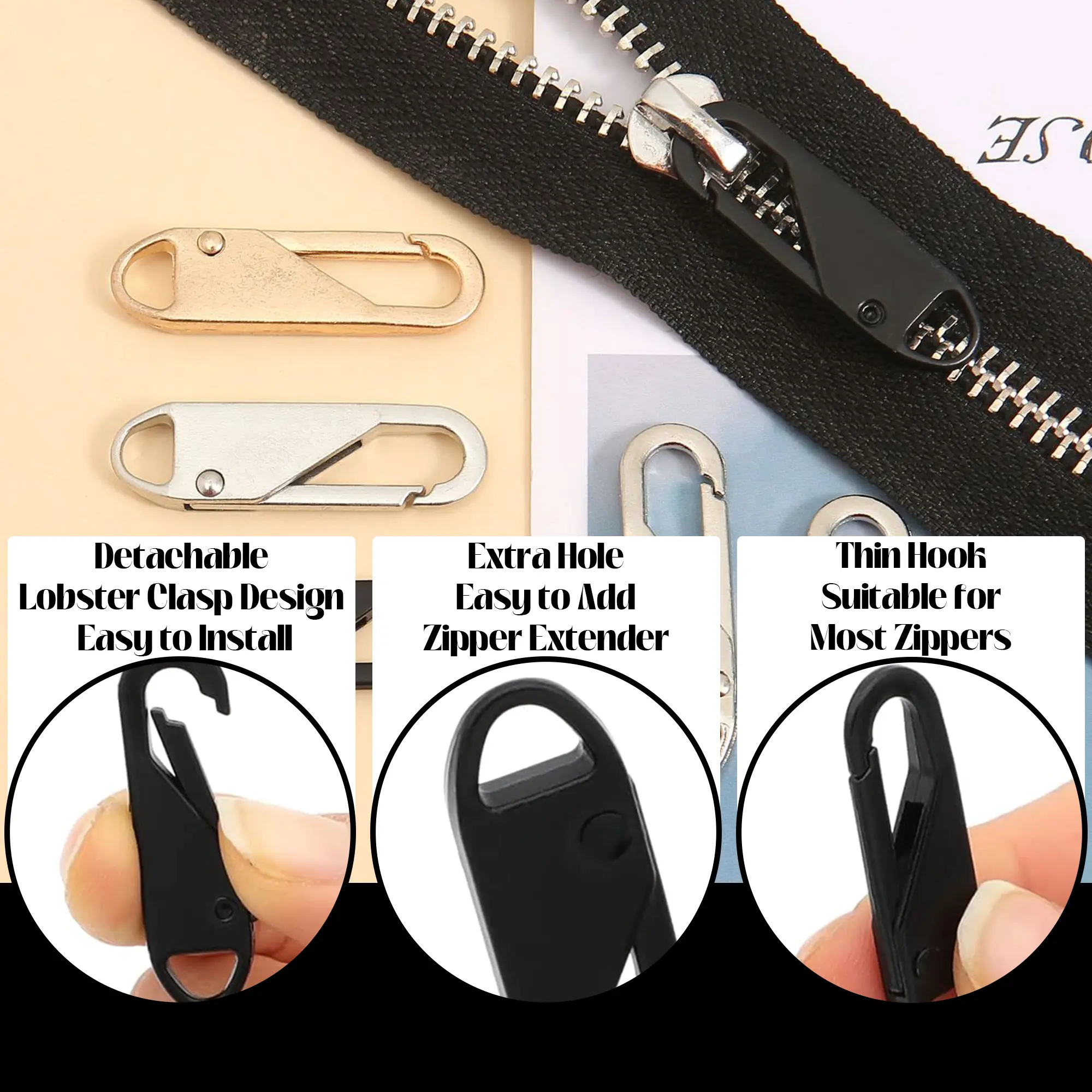 【Easy to Use】Zipper slider pull tab without tools or sewing, simply push in one side and slip it through the opening and let it snap back. Zipper tape is also easy to remove. Easy to repair your clothes, the zipper pull tab brings you much convenience even when you are travelling.
