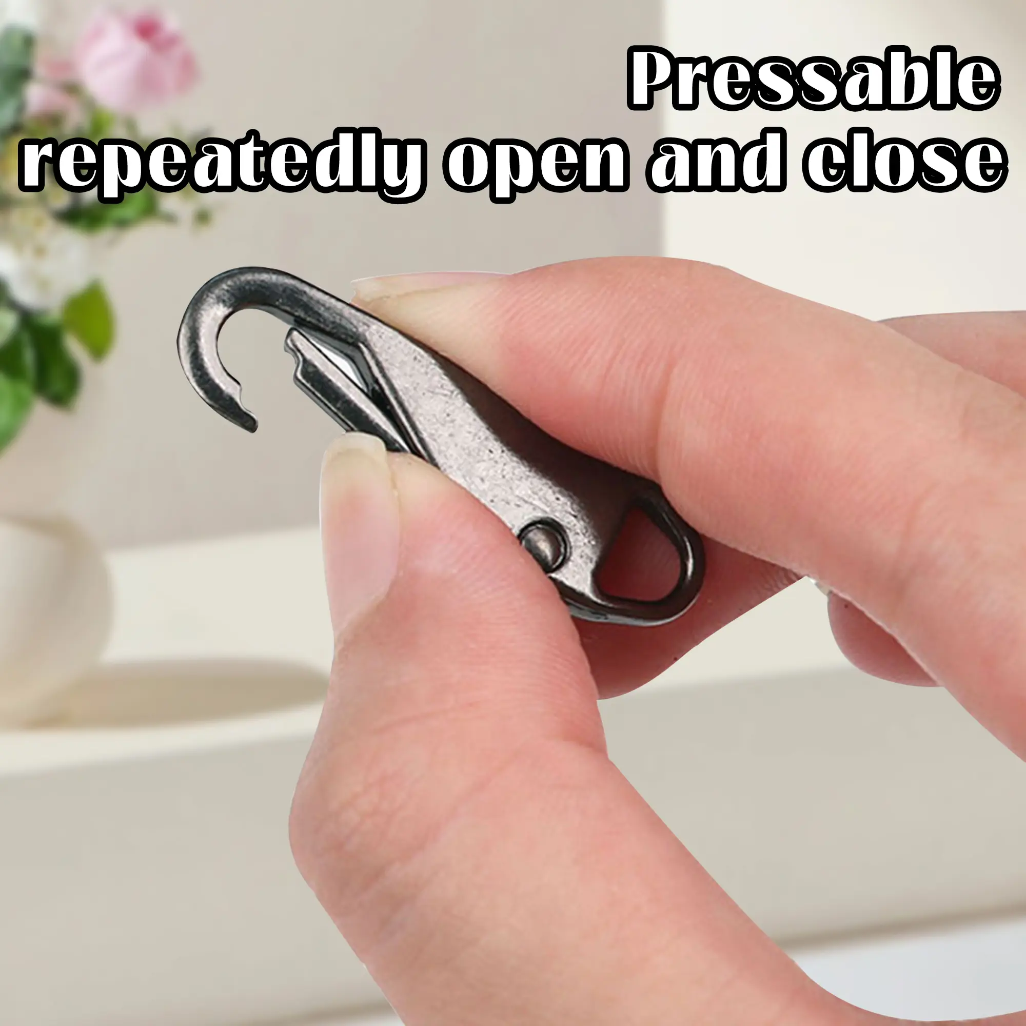 This clip’s narrowest insertion point (at the spring clip opening) is approx. 4.1mm. The zipper pull hole must have an inner diameter >4.1mm for installation. Recommended for #5+ nylon, resin, and metal zippers. Not suitable for #3 or smaller zippers, or non-hole/integrated zipper pulls. Always check the zipper pull hole size before use to avoid damage from forced installation.