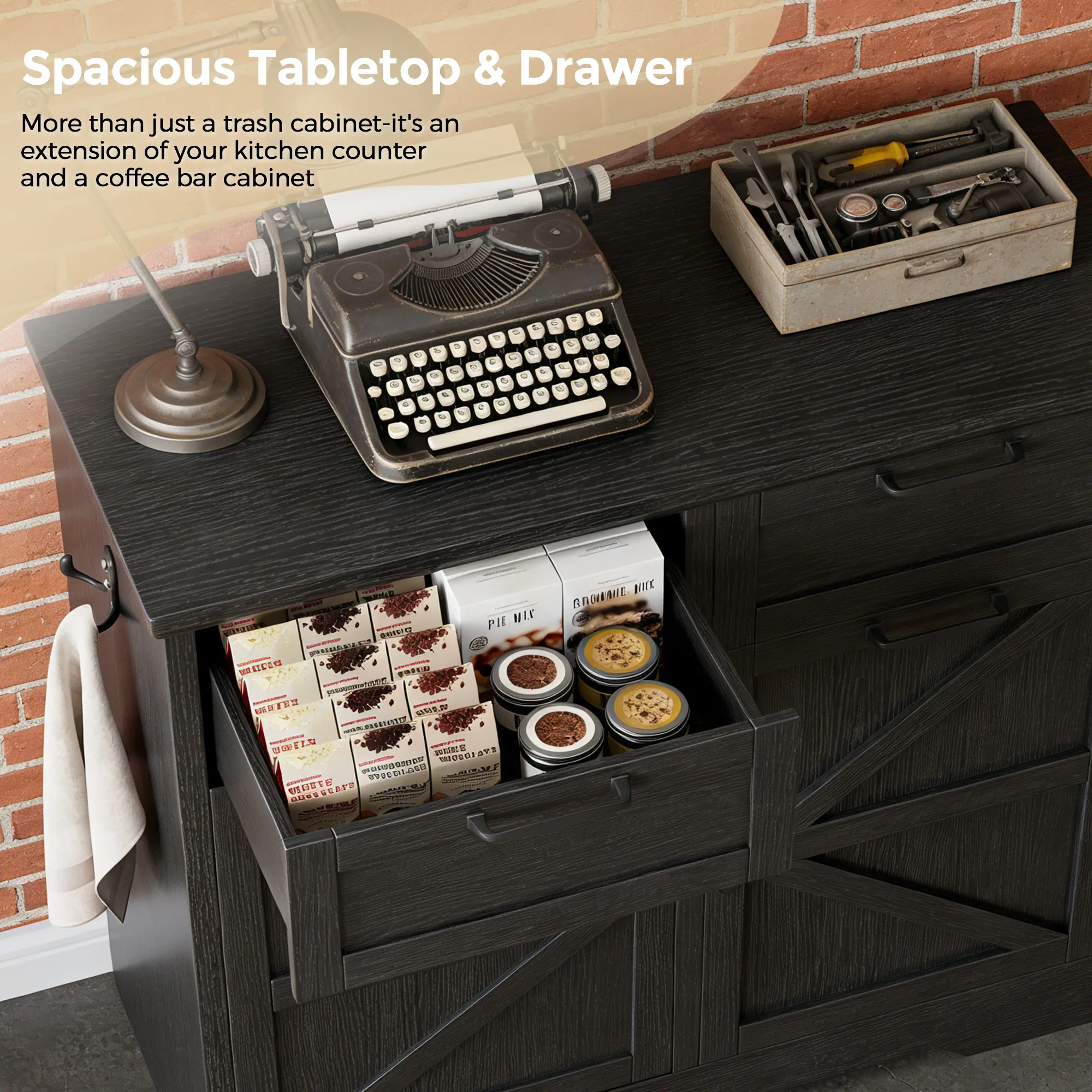 ·[Sturdy & Long-Lasting] Featuring a 1.6-inch thick, extra-wide tabletop and a solid base, this trash bin cabinet can support up to 88 lbs, easily holding items like a coffee machine or microwave. Its anti-tipping mechanism and low center of gravity ensure greater stability, so you won’t have to worry about the cabinet tipping over due to heavy trash, ensuring safe use. Made with waterproof materials, the cabinet is easy to clean, making it ideal for use in kitchens and laundry rooms.