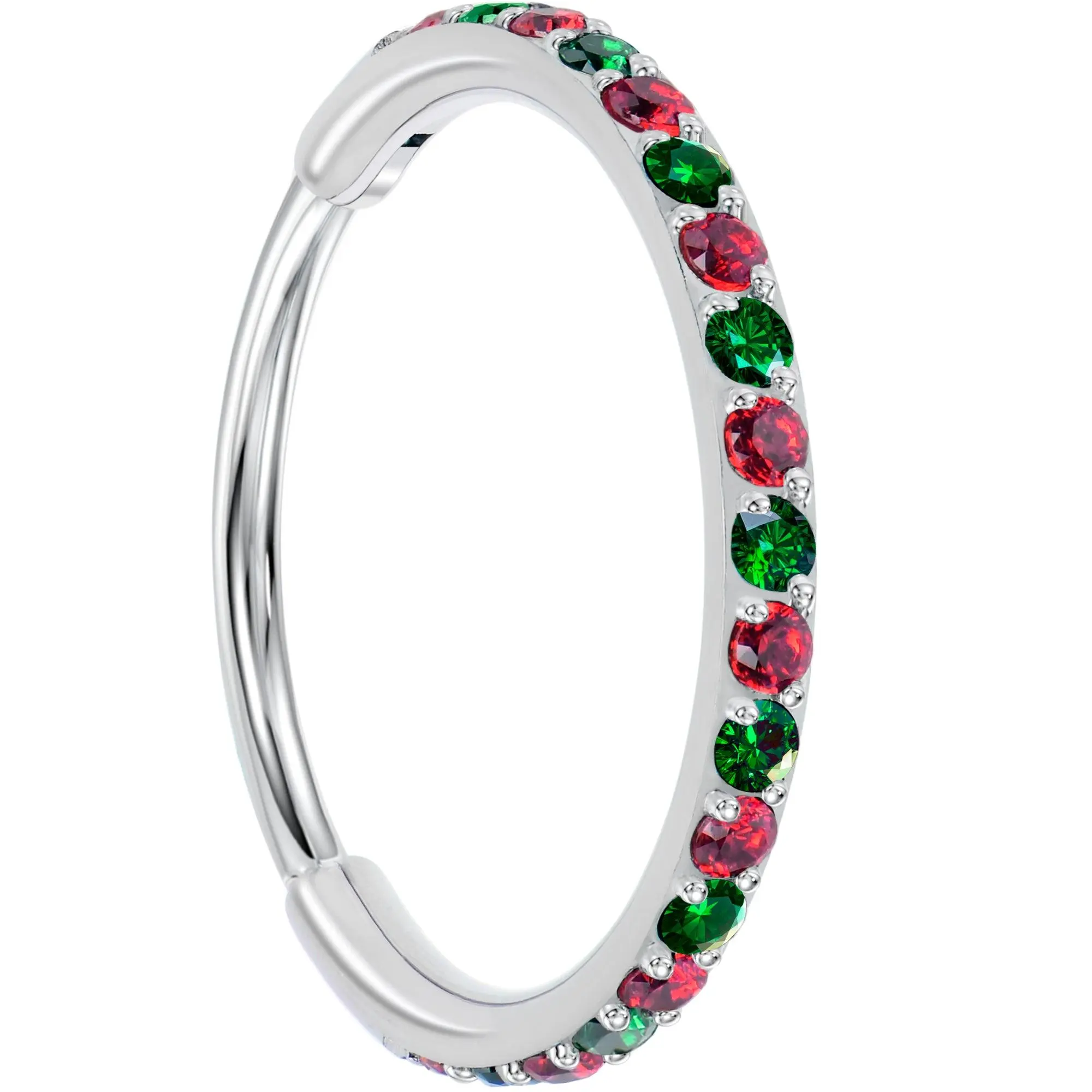 Add a touch of holiday sparkle to your everyday look with our 20 Gauge Micro Gem Titanium Hinged Nose Hoop. Crafted from ASTM F-136 implant-grade titanium, this hypoallergenic Christmas nose ring offers a sleek shine and safe, all-day comfort for sensitive skin. The micro gem detail adds subtle festive brilliance—perfect for holiday parties or everyday wear. Its hinged segment design makes it easy to open, close, and secure without tools.