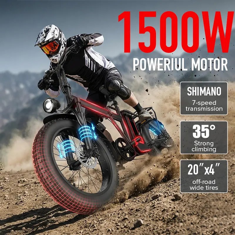 20-Inch All-Terrain Electric Folding Bicycle with High-Carbon Steel Structure 48V 20A-25A Battery 20x4 Off-Road Tires for Versatile Use as Electric Bicycle & Motorcycle SpringStatements