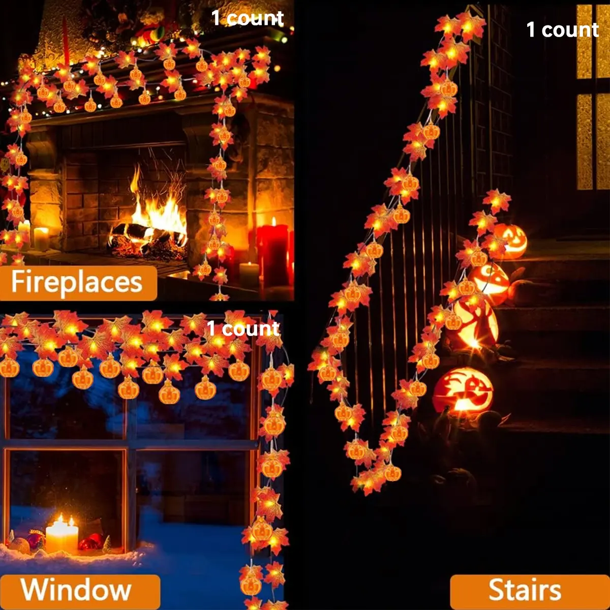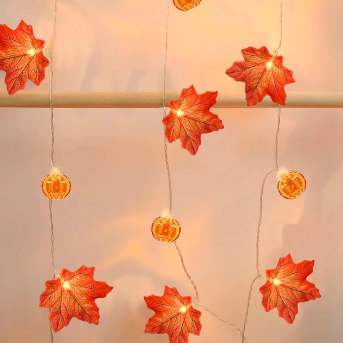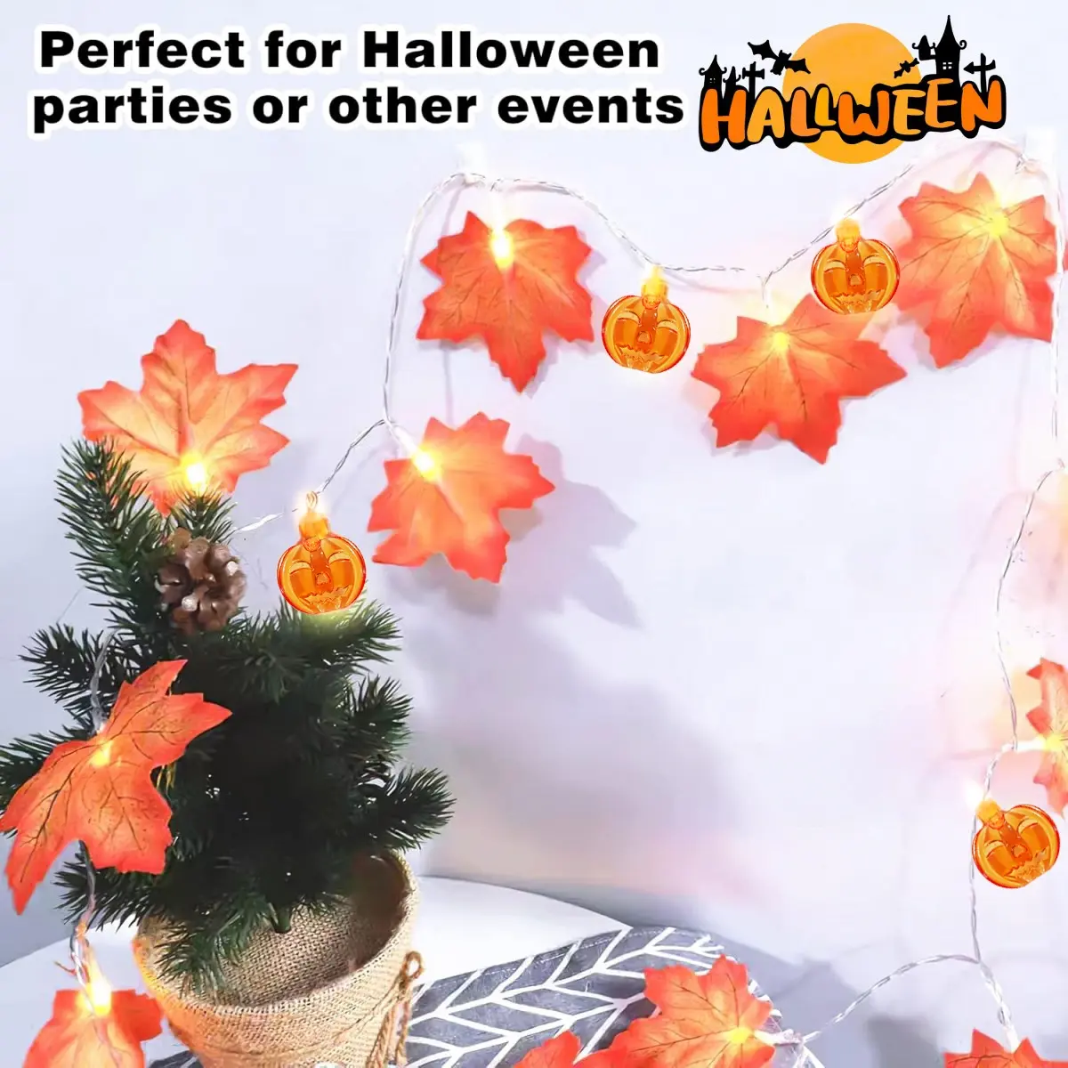 【Thematic Decoration】: This 20 LED pumpkin and maple leaf string light is designed specifically for Halloween-themed decor.