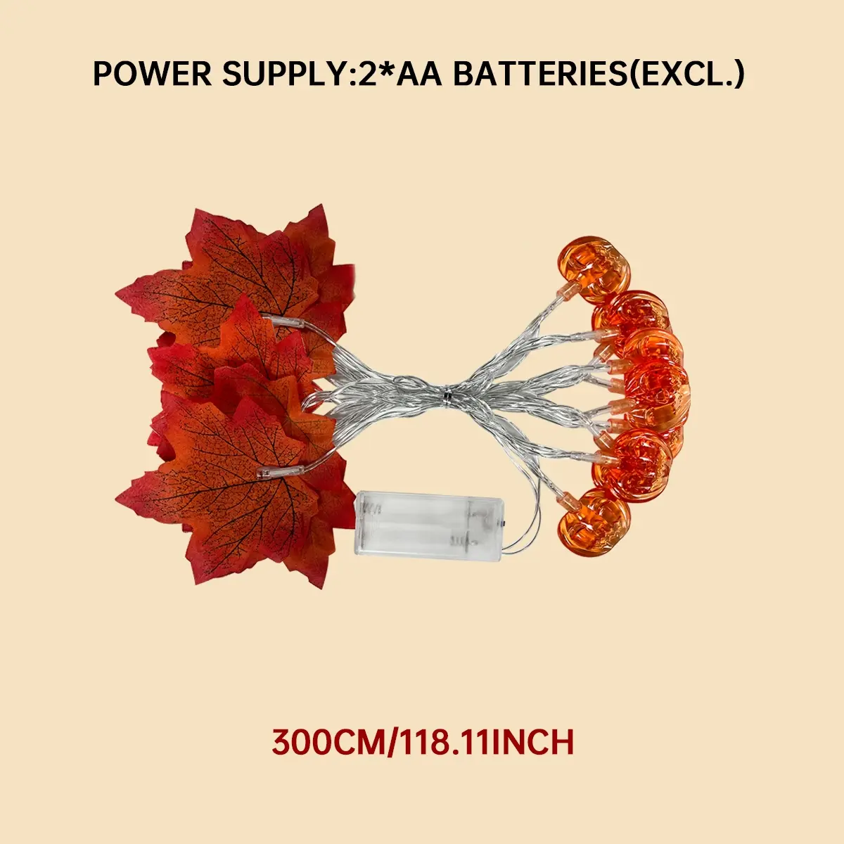 20 LED Pumpkin & Maple Leaf String Lights, Battery Operated, Halloween Decorations for Home Bedroom Store Counter Porch Stairs Fireplace Party, Party Decoration Supplies