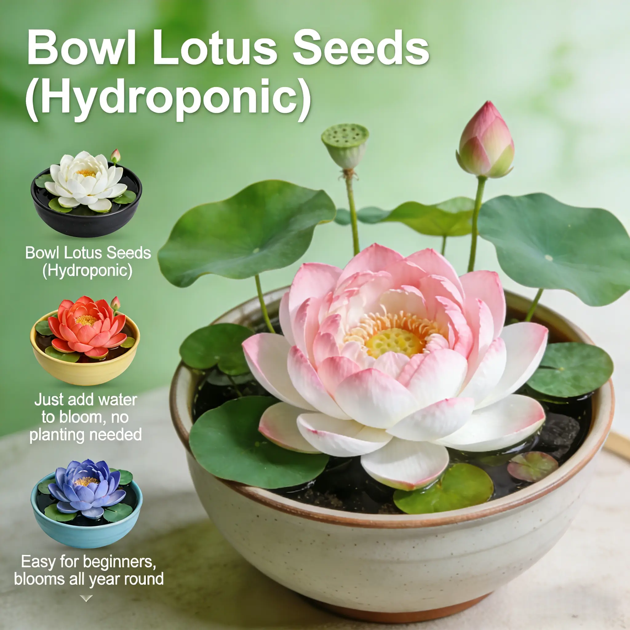 20 Mixed Color Bonsai Lotus Seeds for Ornamental Ponds & Home Planting - Easy to Plant, All Seasons, Open Mouth Bowl Variety