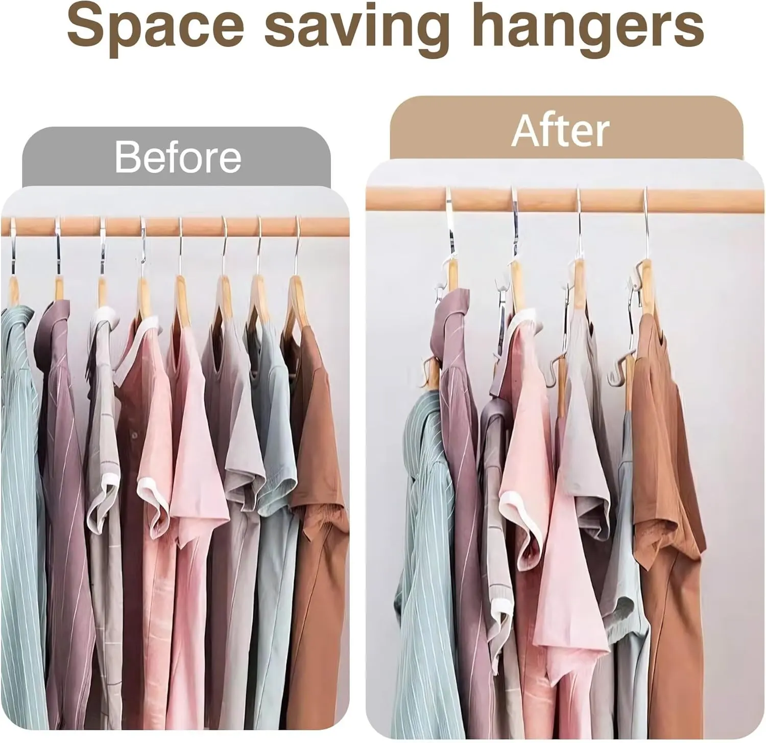 Vertically stack clothes to free up 50%+ wardrobe space instantly. No more wasted gaps!