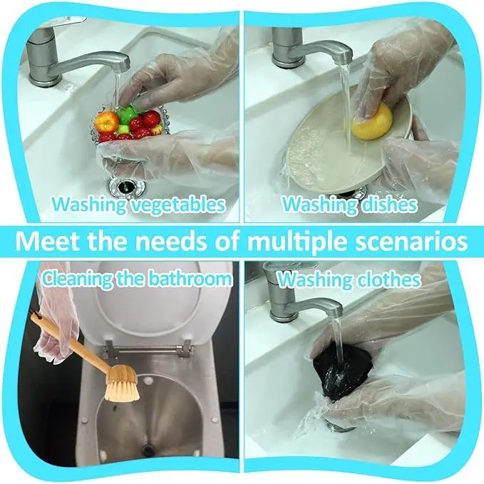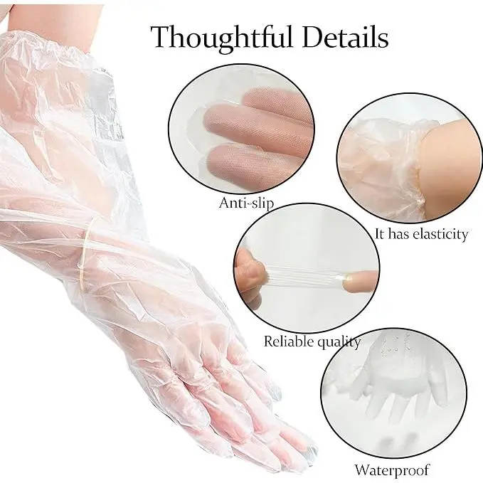 Reliable Quality:Crafted from high-quality CPE material, our long gloves are thickened and durable, providing excellent resistance to wear and tear. They are waterproof and oil-resistant, featuring a snug cuff design that prevents slipping