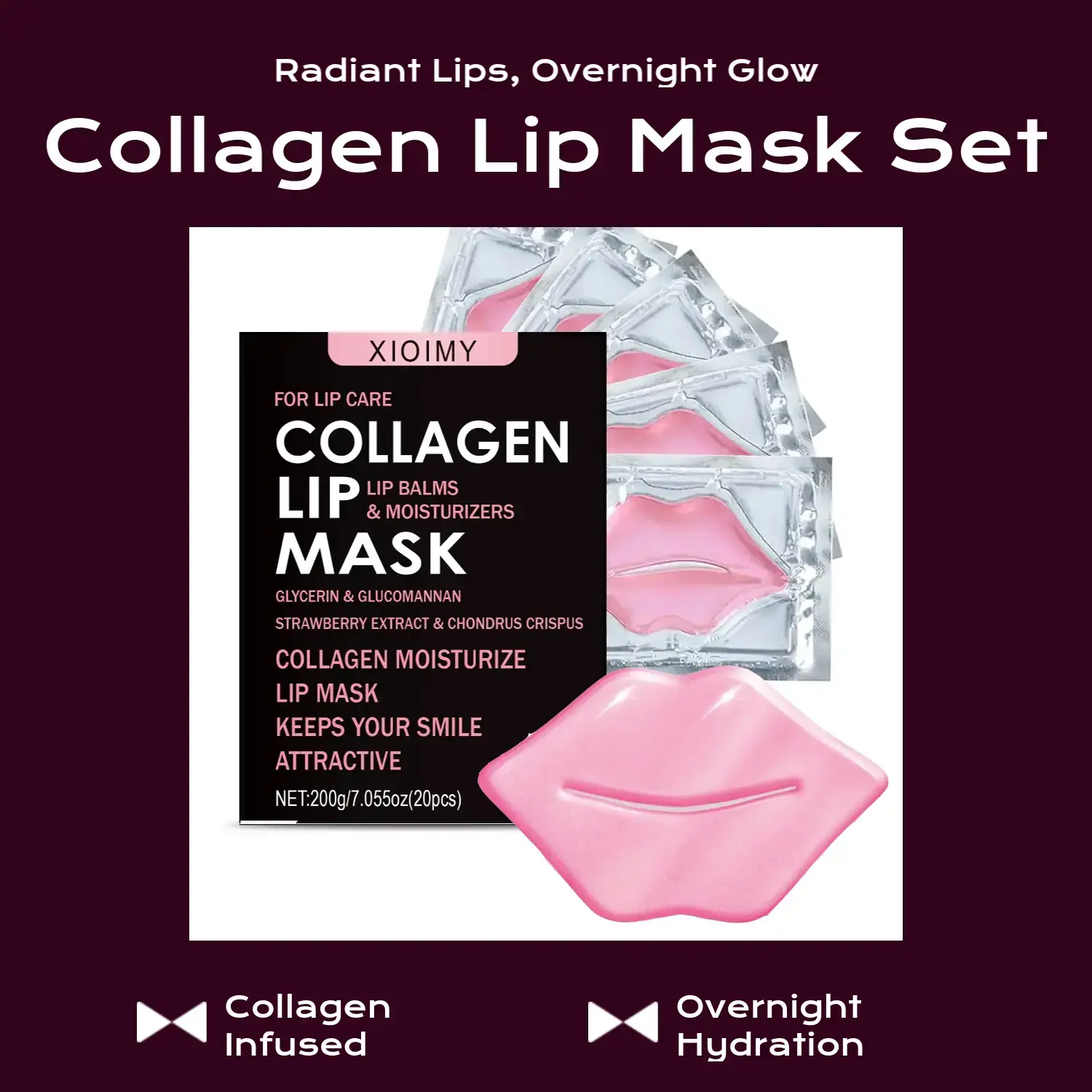 【Collagen Infusion】: Each mask is infused with collagen, enhancing lip hydration and promoting a healthier appearance for your lips.