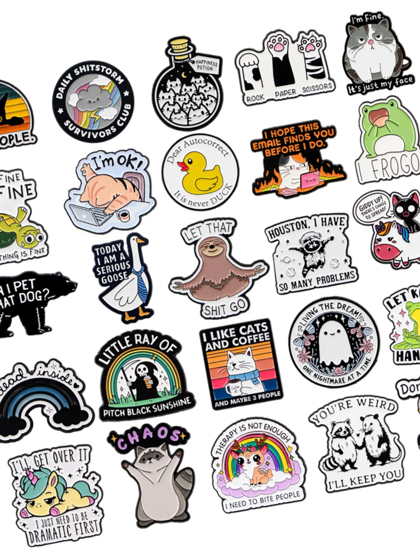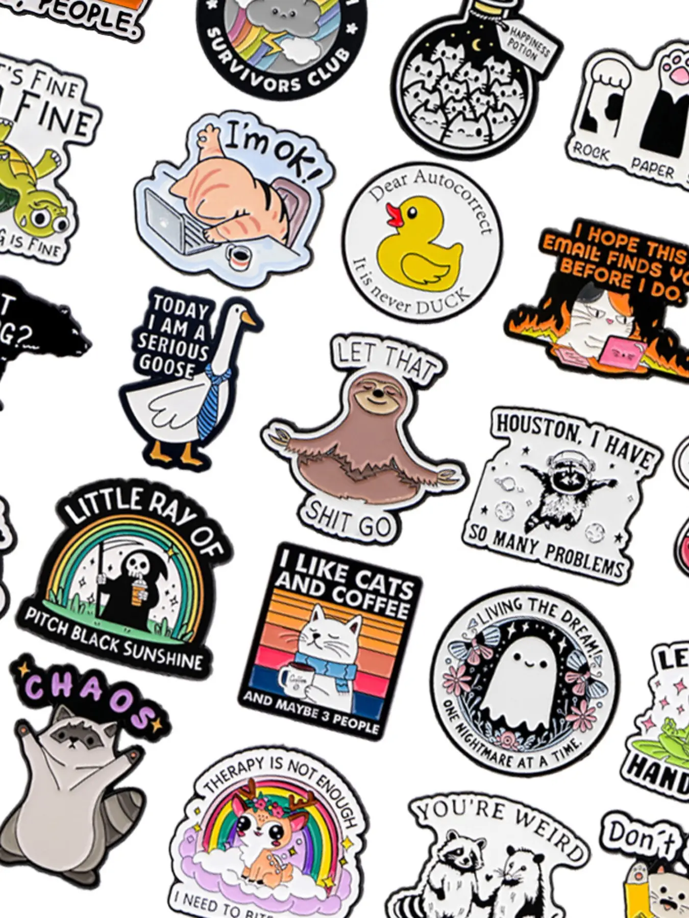 These are all so fun. I have a few of the safe for school ones on my school bag, and I've given a couple away to a coworker. People love them!