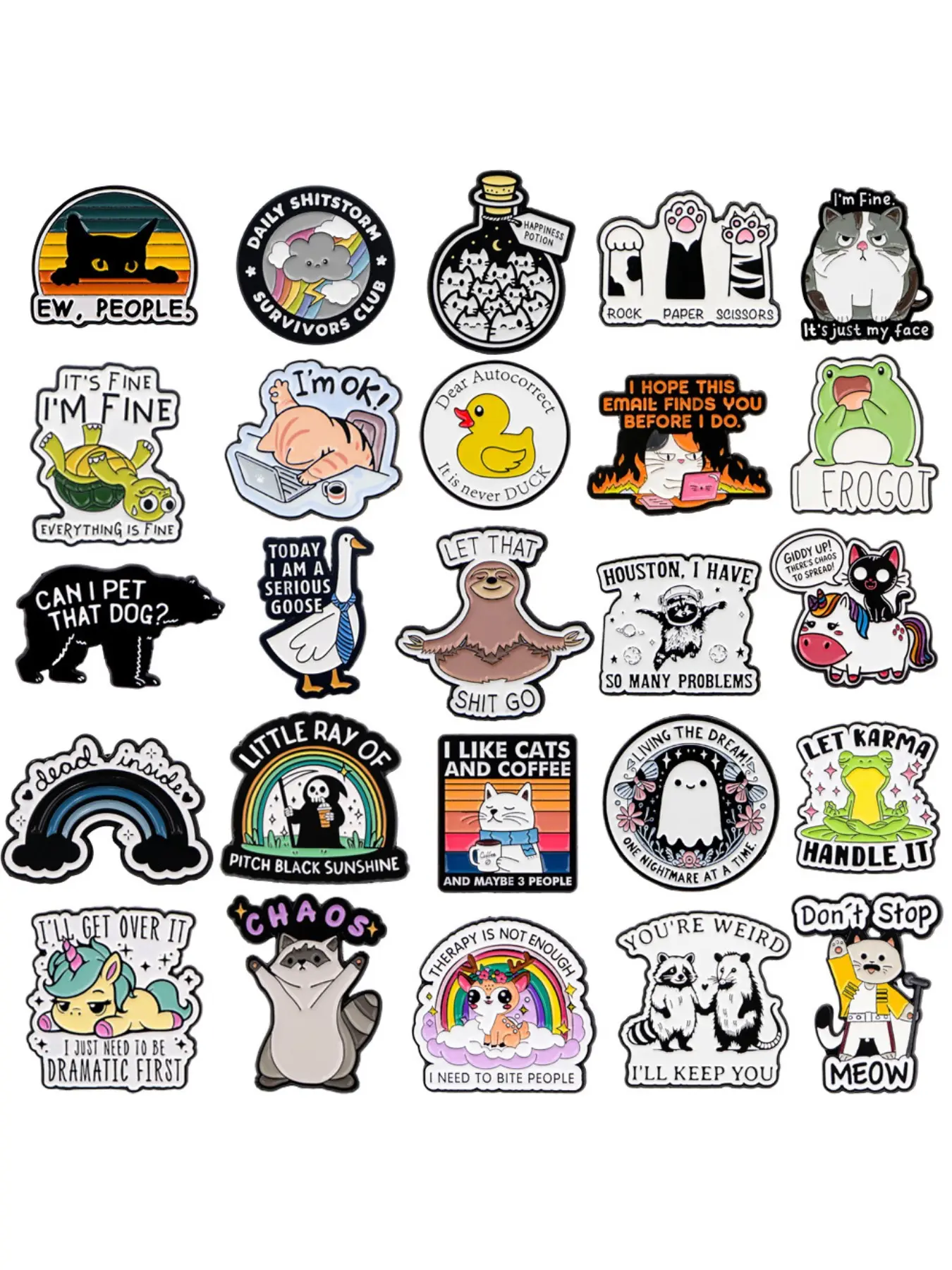 I got this set of 20 pins to give as funny gifts and they are perfect!!! How fun are these!!! I especially like the cat who says ew people.