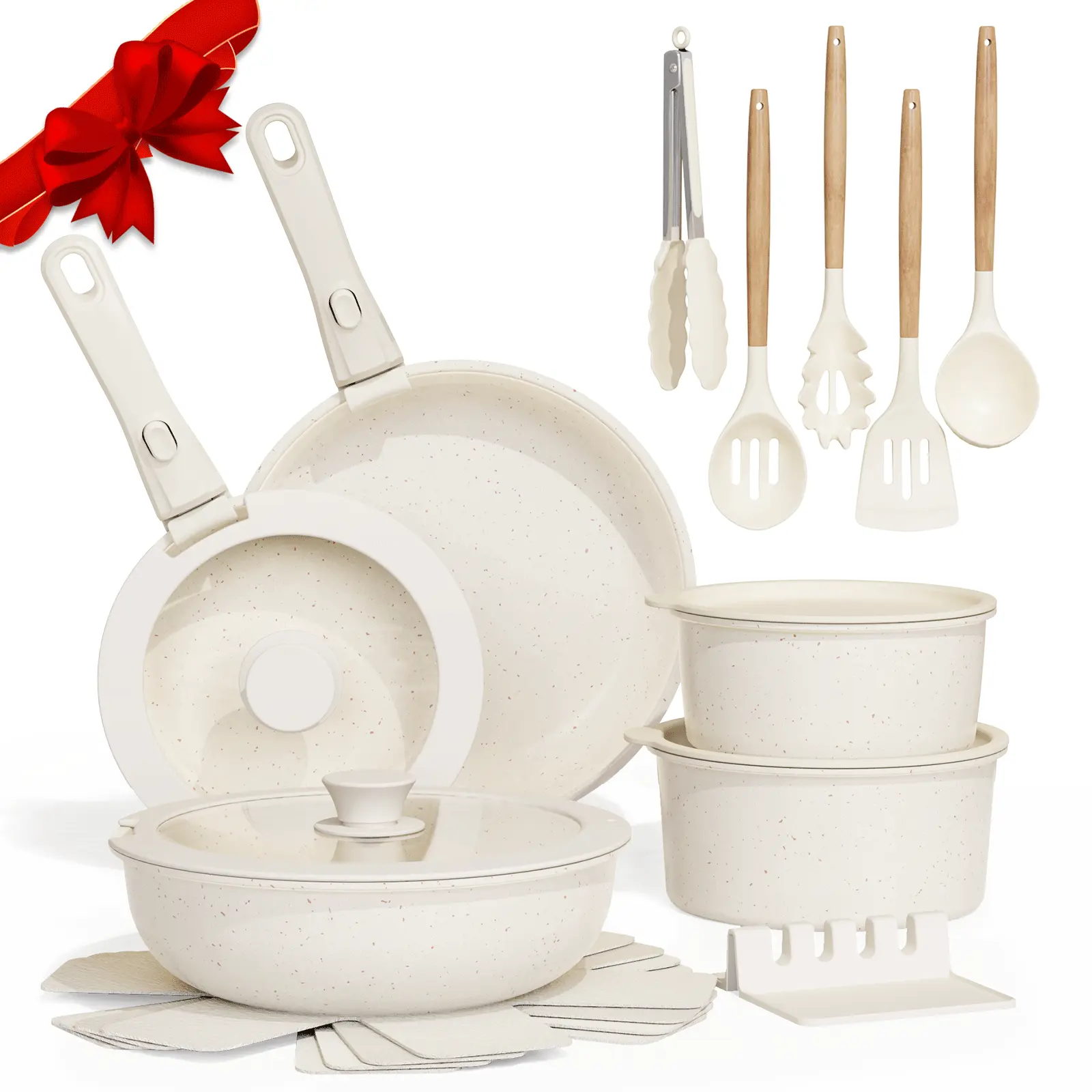 If I could give no stars I would. I ordered 20 pc pink pots and received white pots. I ordered all my appliances and kitchen items pink. Now it’s not going to match.