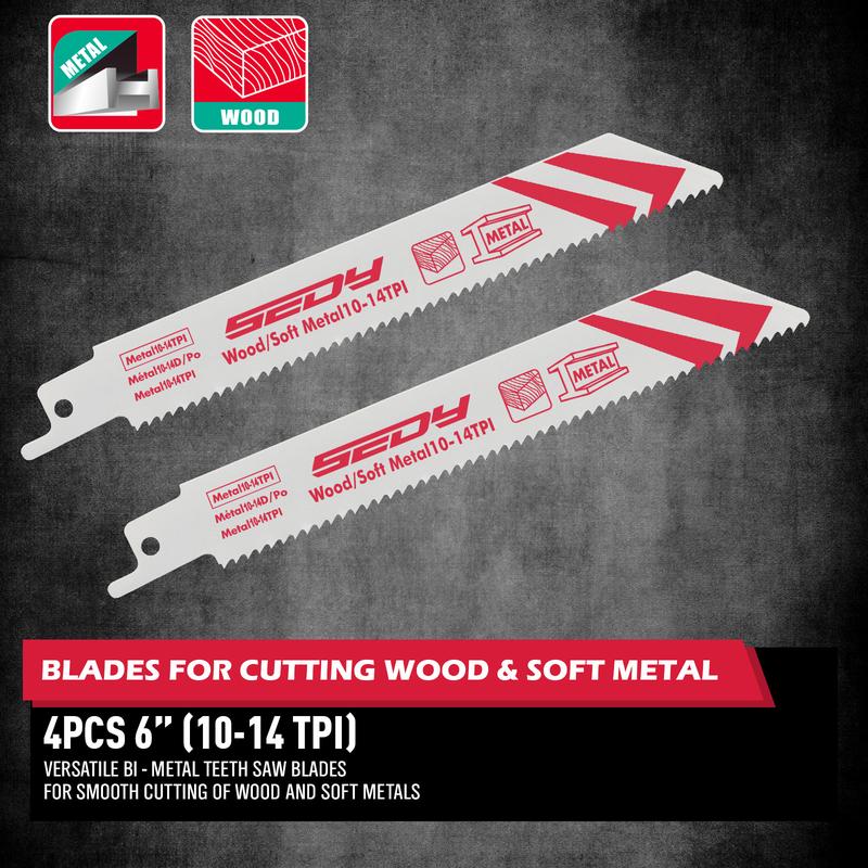 ¡CUTTING EFFICIENCY - Featuring a range of teeth per inch (TPI) configurations, including 6TPI for wood, 18TPI for metal, and 10-14TPI for wood and soft metal, these blades provide optimal cutting speeds and precision for a variety of tasks.