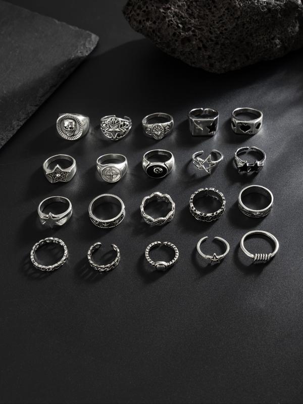 20 Piece Vintage Star Skull Stacking Ring Set, Dark Punk Joint, Holiday Gift, Street Style Charm Accessories, All Seasons