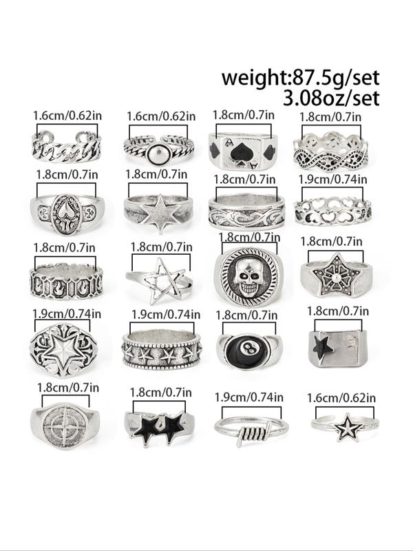 20 Piece Vintage Star Skull Ring Set, Dark Punk Stackable Rings for Holiday Gifts, Unique Street Style Charm Accessories #stackedringset #latinajewelry #falljewelry #braceletset #rauchsjewelry #rarecolorsjewelry #s925sterlingsilverring #unisexretrojewelrygift #mixedmetaljewelry #jewelryobsessed