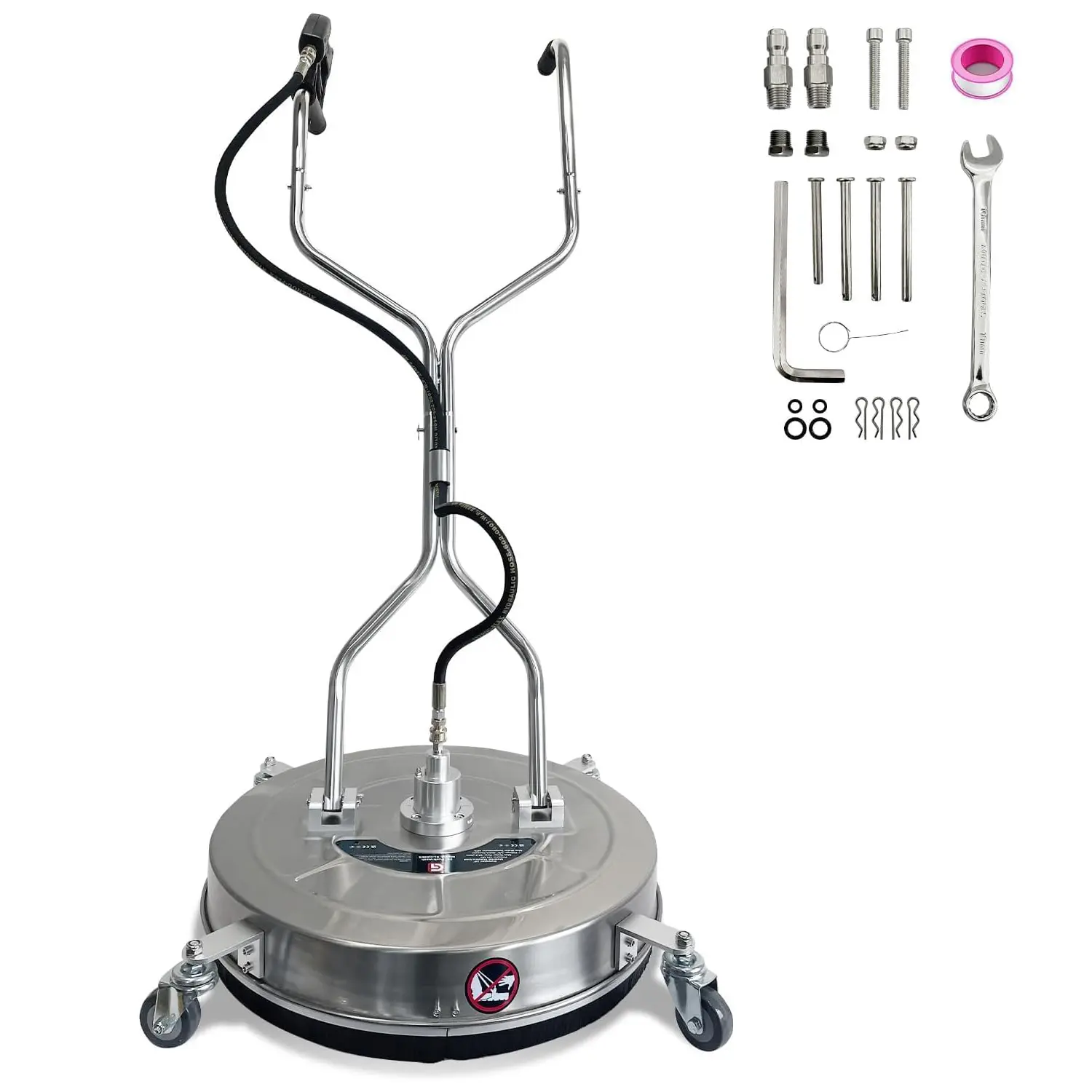 ·2. DURABLE YET LIGHTWEIGHT STAINLESS STEEL CONSTRUCTION: Built to last, this surface cleaner features a heavy-duty stainless steel and brass body that withstands high pressure, heat, and chemicals without rusting or corroding. The fully sealed and pre-greased swivel prevents clogging and leaks, while its lightweight design ensures easy handling whether using cold, hot, or soapy water.