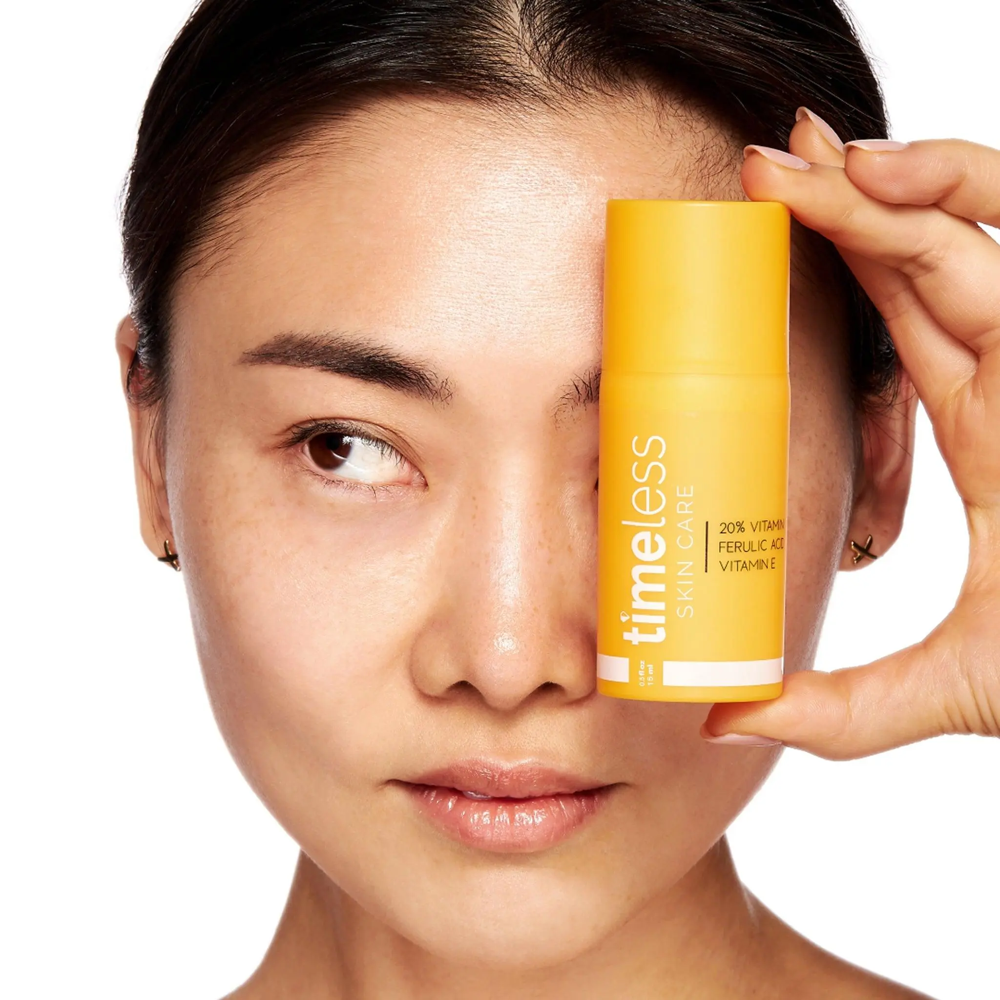 The Brightener -  Give your skin a megadose of Vitamin C. Our 20% Vitamin C + E + Ferulic Acid serum brightens skin, builds collagen, and evens out tone. Enhanced with Vitamin E & Ferulic Acid, this serum is a great pick me up for dull, discolored, and stressed skin, while providing 24/7 protection against environmental pollutants.